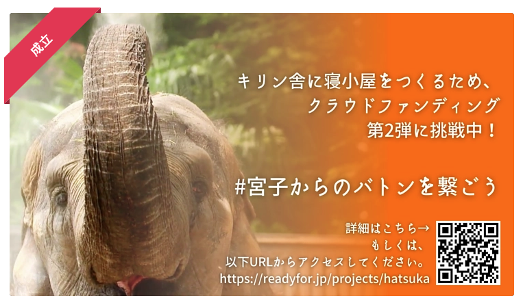 一昨年にはじめて挑戦したクラウドファンディングではアジアゾウ「宮子」に向けたバリアフリーのプールの新設に向けた資金を募り、今年の2月から3月にかけての挑戦では、日本国内で最高齢のアミメキリン「ハツカ」をはじめとした家族たちのために、寝小屋を新設すべくその工事費用を募りました。