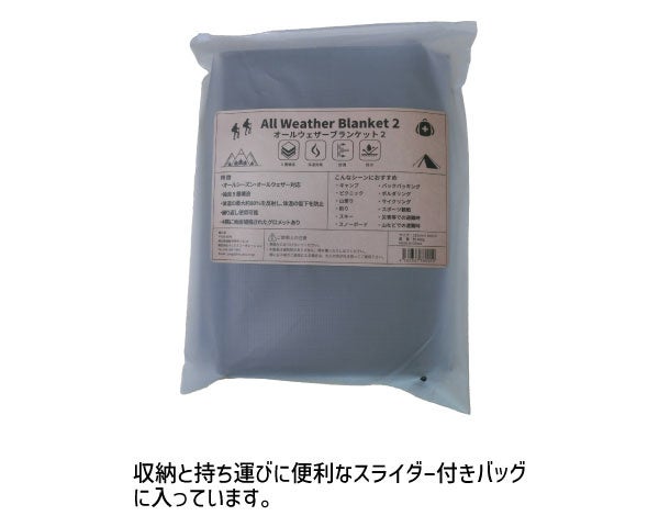 いつ起こるかわからない災害に備え、高品質で保温性の高いオールウェザーブランケット2を備蓄しておくことをお勧めします。