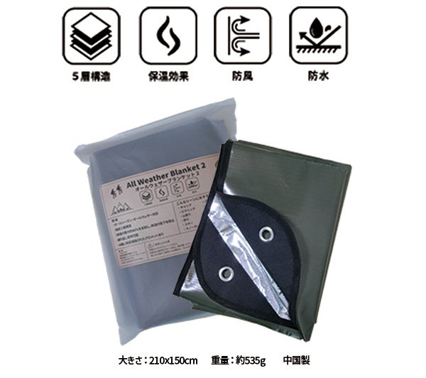 アメリカ軍をはじめ世界中の軍隊で使用され、防衛省、地方公共団体、学校、企業等で採用実績のあるオールウェザーブランケットがグレードアップして登場。