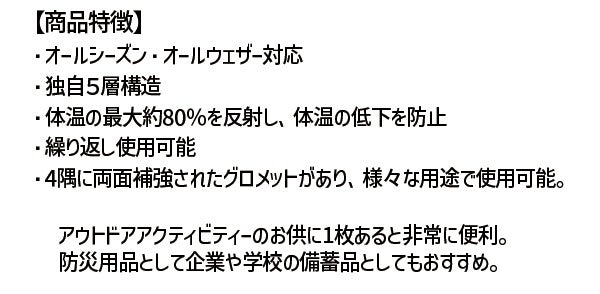 緊急時(低温及び高温時)のブランケット、グラウンドシート、簡易タープ等様々な目的で使用可能