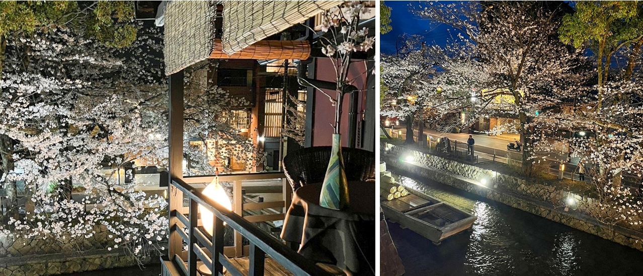 京都市中京区、高瀬川に唯一現存する、史跡「一之船入」を望むロケーションにこの春オープンした、隠れ家のようなバー「帆」 桜のシーズンはお花見のご利用で多くのお客様にご好評いただきました。