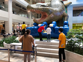 噴水広場では、高さ約8mの迫力満点の巨大なワニの形をしたスライダーや、ワイヤーアクションによるバク宙チャレンジ、ダンボール迷路など、1回数百円で子どもたちが「なんか面白い」を楽しく体験できる様々なイベントを開催します!