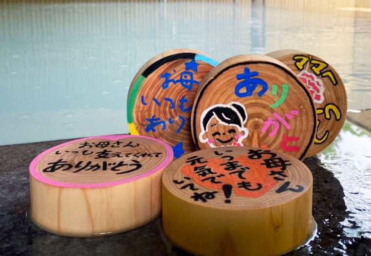 このイベントでは、地域の⼦どもたちやお客さま、店舗のスタッフがお母さんへの「ありがとう」の気持ちを記したヒノキの⼊浴⽊99個を女湯に浮かべます。湯船の中でお母さんへの気持ちが綴られたメッセージを読みながら、さわやかなヒノキの⾹りでリフレッシュ。⾝も⼼も温まったあとで、『100のありがとう』を完成させるのはお客様。残り1つのメッセージは、お客様から⼤切な⽅へ直接伝えてください。