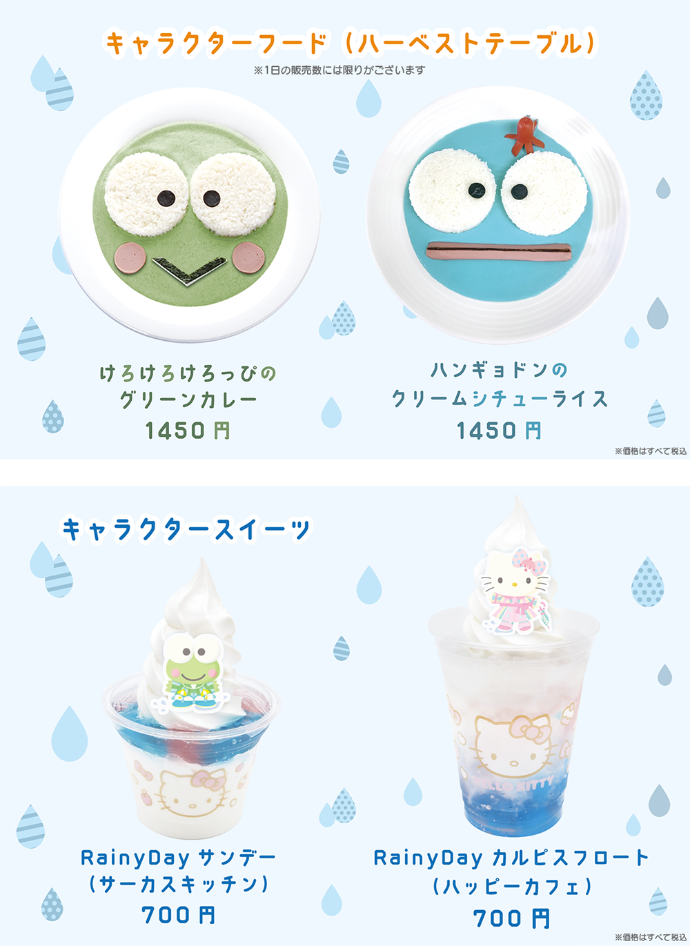 「とっておき♪のRainy Day」の期間には限定のキャラクターメニューとデザートメニューが登場します。