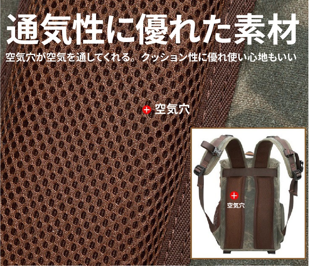 背中や肩に当たる部分には空気がよくとおるようにネット状になっています。