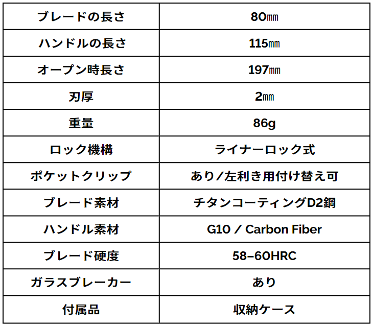 人間工学に基づいたG10とカーボンファイバーで作られた、強度・グリップ・快適性に優れたハンドル