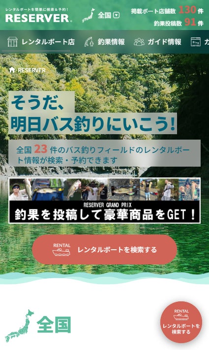 RESERVER(リザーバー)は全国のバス釣りレンタルボート店をWEBで検索・予約できる機能を中心としたバス釣りポータルサイトです。