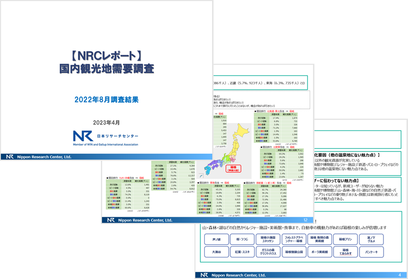 「観光地国内需要調査」(2022年8月)で実施した国内主要観光地5ヵ所(日光・草津・箱根・有馬・別府)の調査レポートを無料でご提供します。ご希望の方は、下記【お問い合わせ先】までご連絡ください。