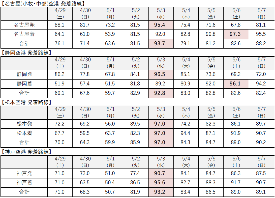 ■ 日別の搭乗率(単位:%)※ピーク日は太字で記載