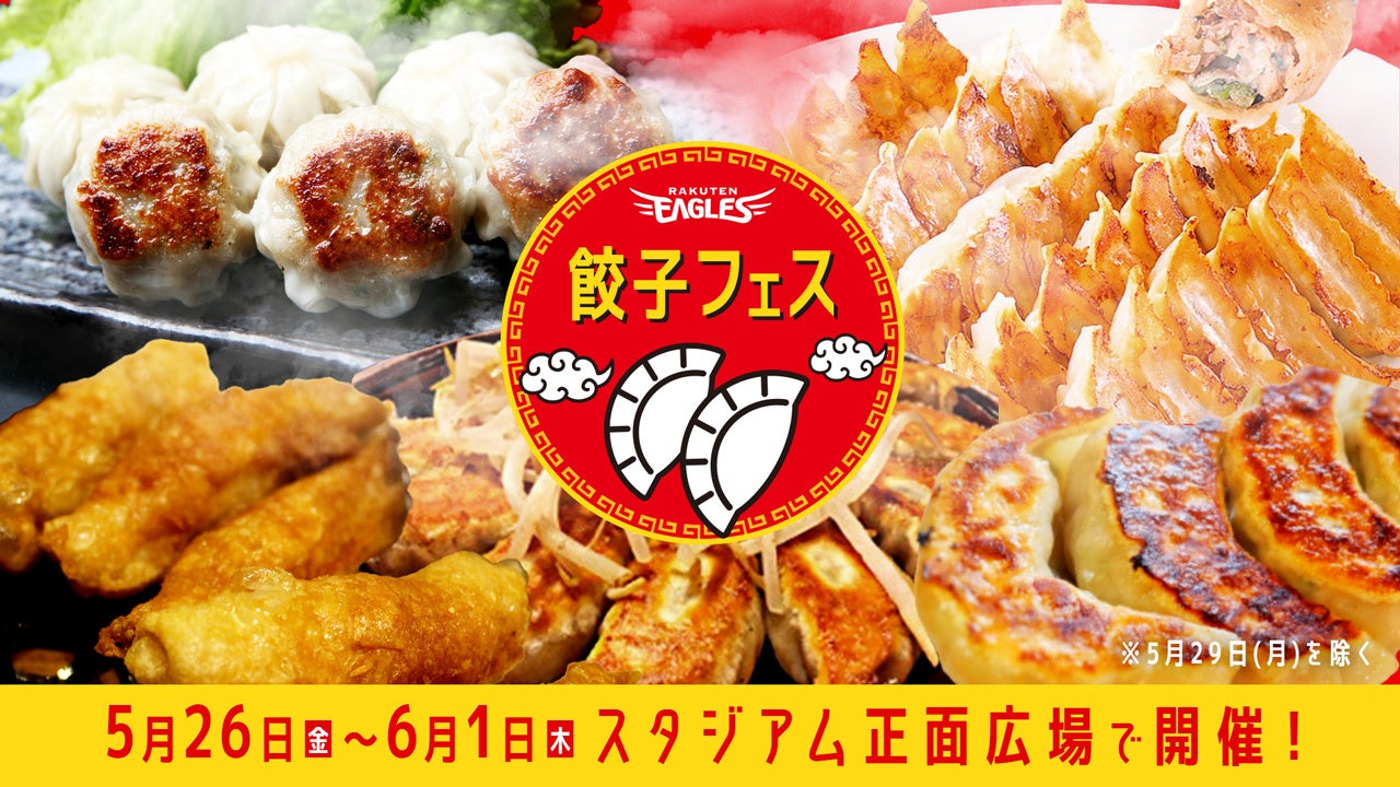 株式会社楽天野球団(本社:宮城県仙台市宮城野区、代表取締役社長:米田 陽介)は、5月26日(金)から6月1日(木)の5日間(※5月29日を除く)、楽天モバイルパーク宮城 正面広場にて『餃子フェス』を開催することとなりましたので、お知らせいたします。