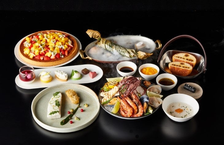 「アイアン・ベイ」で開業後初となる土日・祝日限定のランチコースを開始いたします。コースは三浦半島から届いた獲れたての魚介類を使用した「アイアン・ベイ シーフードプラッター」からスタートし、メインは「本日の鮮魚のバナナの葉包み焼き」または「シー&ランド国産牛フィレ アワビ」のいずれかよりお選びいただけます。デザートには、ペストリーシェフ特製のスイーツをブッフェスタイルにてお楽しみいただけます。