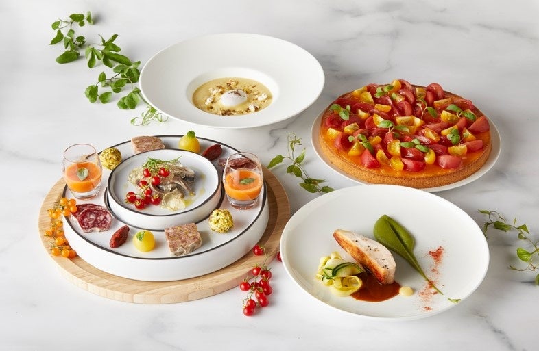 この夏、「ブラッスリー・デュ・ケ」では、トマト本来のおいしさを最大限に引き出した土日・祝日限定のウィークエンドランチをご用意いたします。シェアしてお召し上がりいただく「トマトのガスパチョ」、「イワシのマリネ トマトゼリー」などを含むシェアしてお楽しみいただける大きなプラッターにのせた、ひとくちサイズの料理からスタートし、メインには「大山鶏ムネ肉の低温調理」または皮をパリッと焼き上げた「スズキのソテー」など、ヘルシーで夏の栄養補給にぴったりなメニューをご用意しております。デザートには甘いトマトのタルトをお楽しみいただけます。