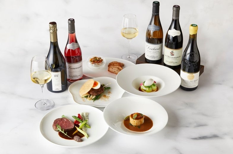 3階「ブラッスリー・デュ・ケ」では、横浜市が開催するフランス文化と美食の祭典「横浜フランス月間」に合わせ、一夜限りの「フレンチフェスティバル・ワインディナー」を開催いたします。ビオディナミ農法として知られる名門ミシェル・シャプティエの最高峰のローヌワインをペアリングでご用意し、美食の都リヨンの郷土料理「リヨン風サラダ」、「セルヴェル・ド・カニュ(チーズのディップ)」や、「牛フィレ肉のロースト」など新緑のフランスに想いを馳せた本格的なフレンチコースをご提供します。
