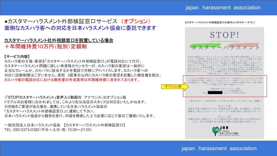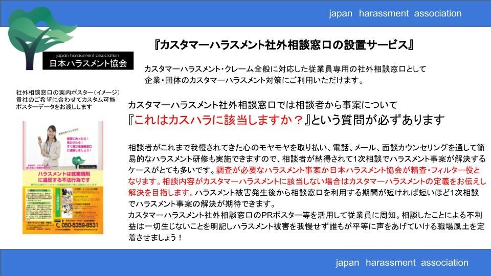 カスタマーハラスメント外部検証窓口サービスも同時に開始することをお知らせいたします。