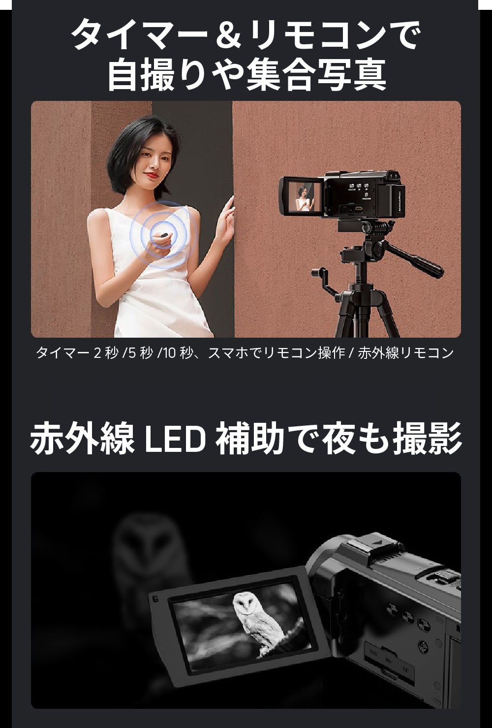 リモコンまたはスマホ操作で自撮りもスムーズ