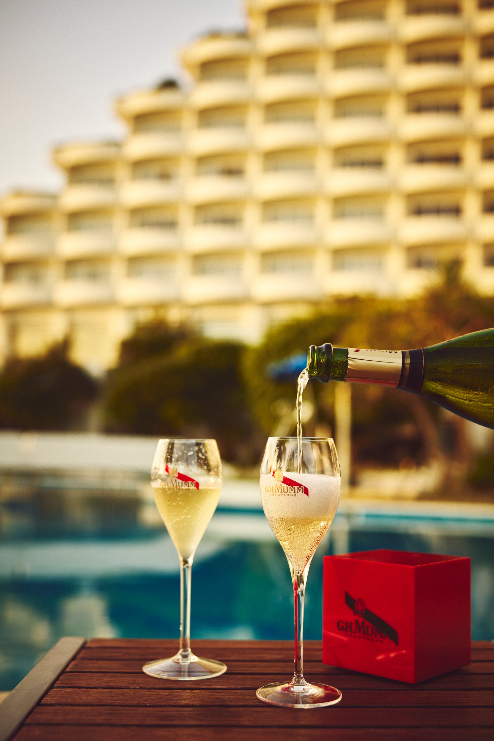 ◇夏にピッタリな冷たいシャンパーニュ「マム グラン コルドン」をプールサイドで提供