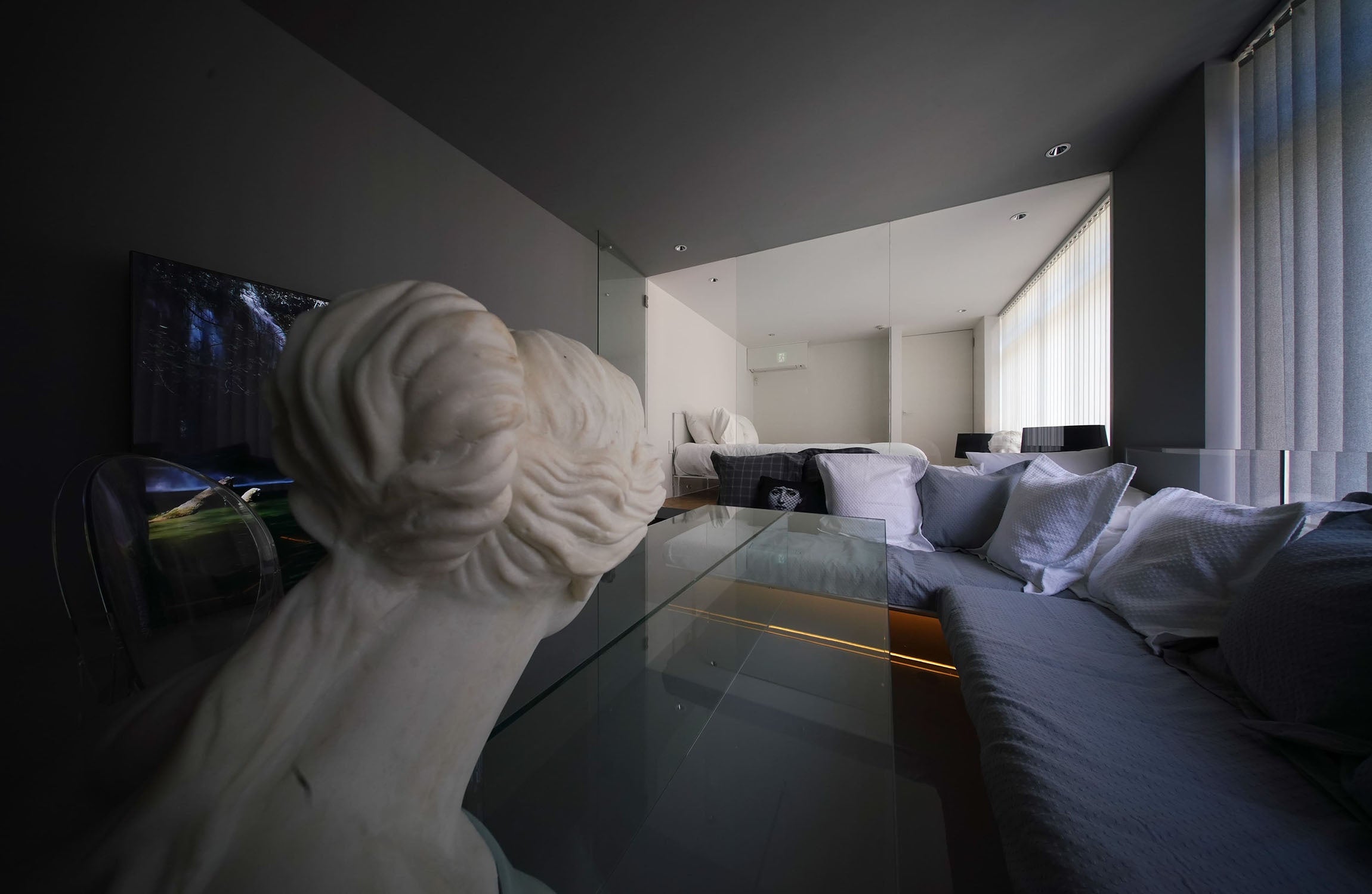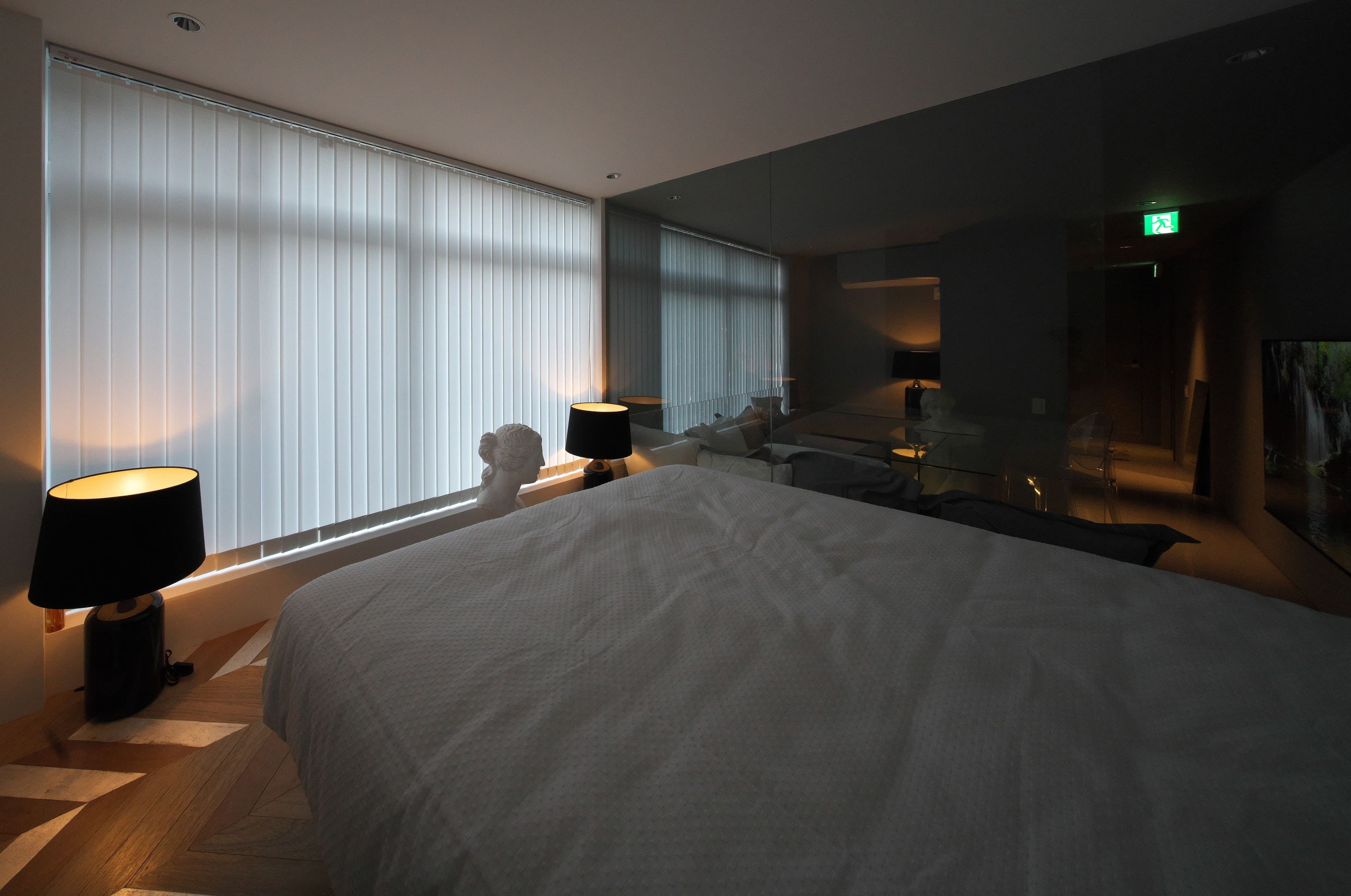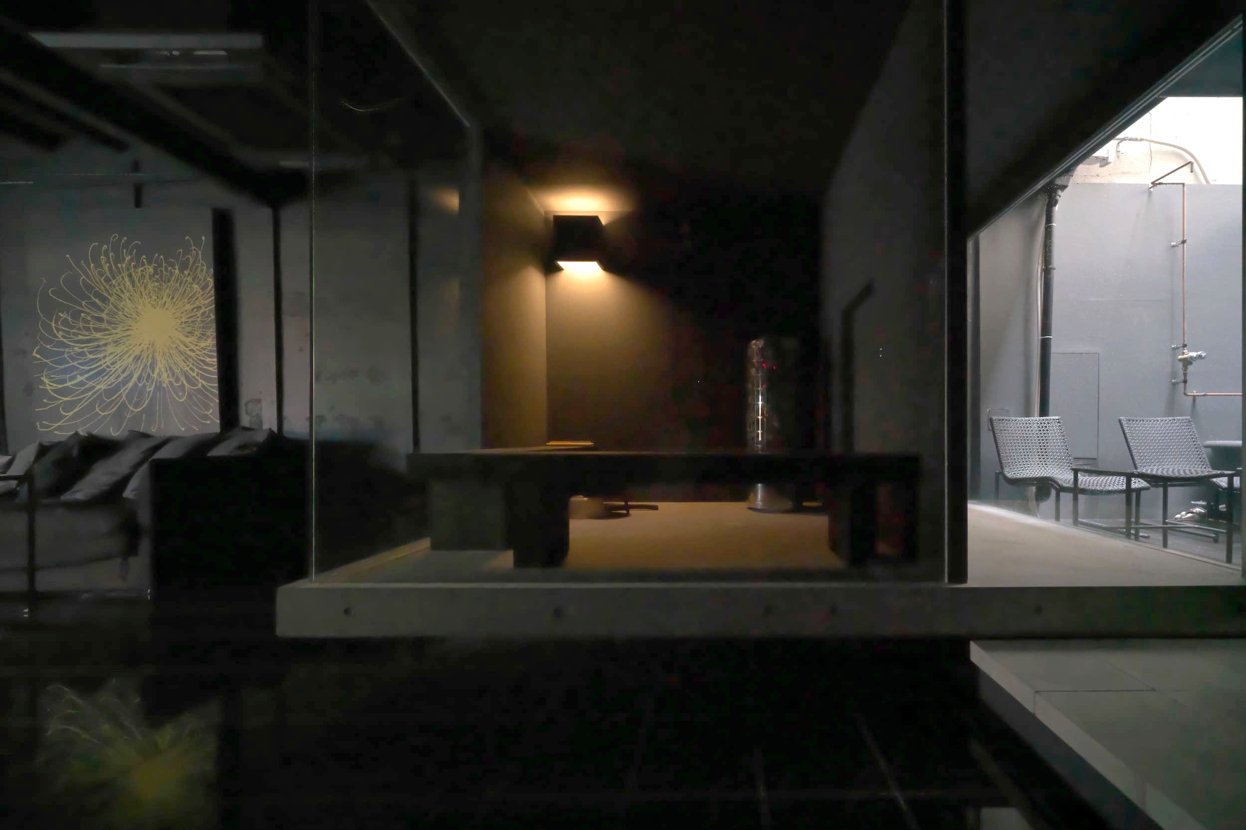 東京北参道駅から徒歩10分、新宿御苑の南西に建つ、築50年のビルをリノベーションした宿泊も可能なプライベートサウナです。 外との境界は障子、座面は鉋で仕上げた無塗装の奈良吉野のヒノキ、ロウリュできるハルビアのサウナストーブ、10度を切るシングル温度も可能な水風呂と温湯のバスタブ、屋外のデッキスペースでの外気浴、石膏像とガラスを組み合わせたテーブルがあるリビングでの食事、銀箔をアクセントにした白いベッドルームにはアクリル製の透明なベッドを配置。ビルには専用駐車場があり、予約いただければお車でご来店いただけます。