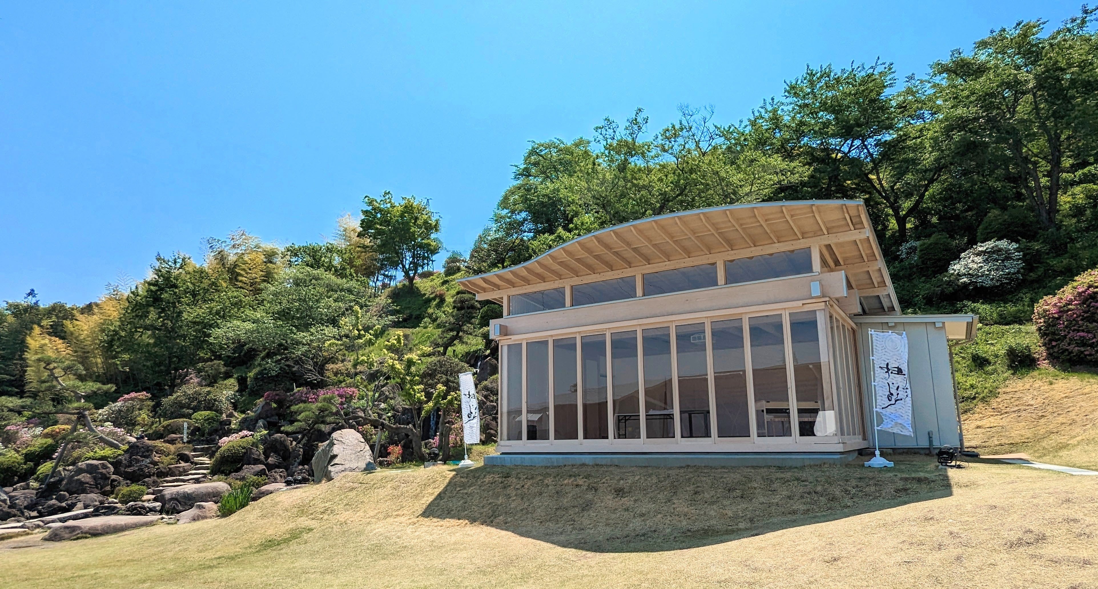 金蛇水神社 神社アートプロジェクト(まれびとプロジェクト)では、参道テラスに集まる観客と作家(まれびと)が、芸術を軸にした地域社会を形成し、そして地域経済を持続していくことを⽬標に地元企業、⾃治体と協⼒して推進していくプロジェクトです。現在、5月3日~15日に花まつり、15日~21日に例大祭が開催されています。参拝の際にはどうぞお寄りいただき、お楽しみください。
