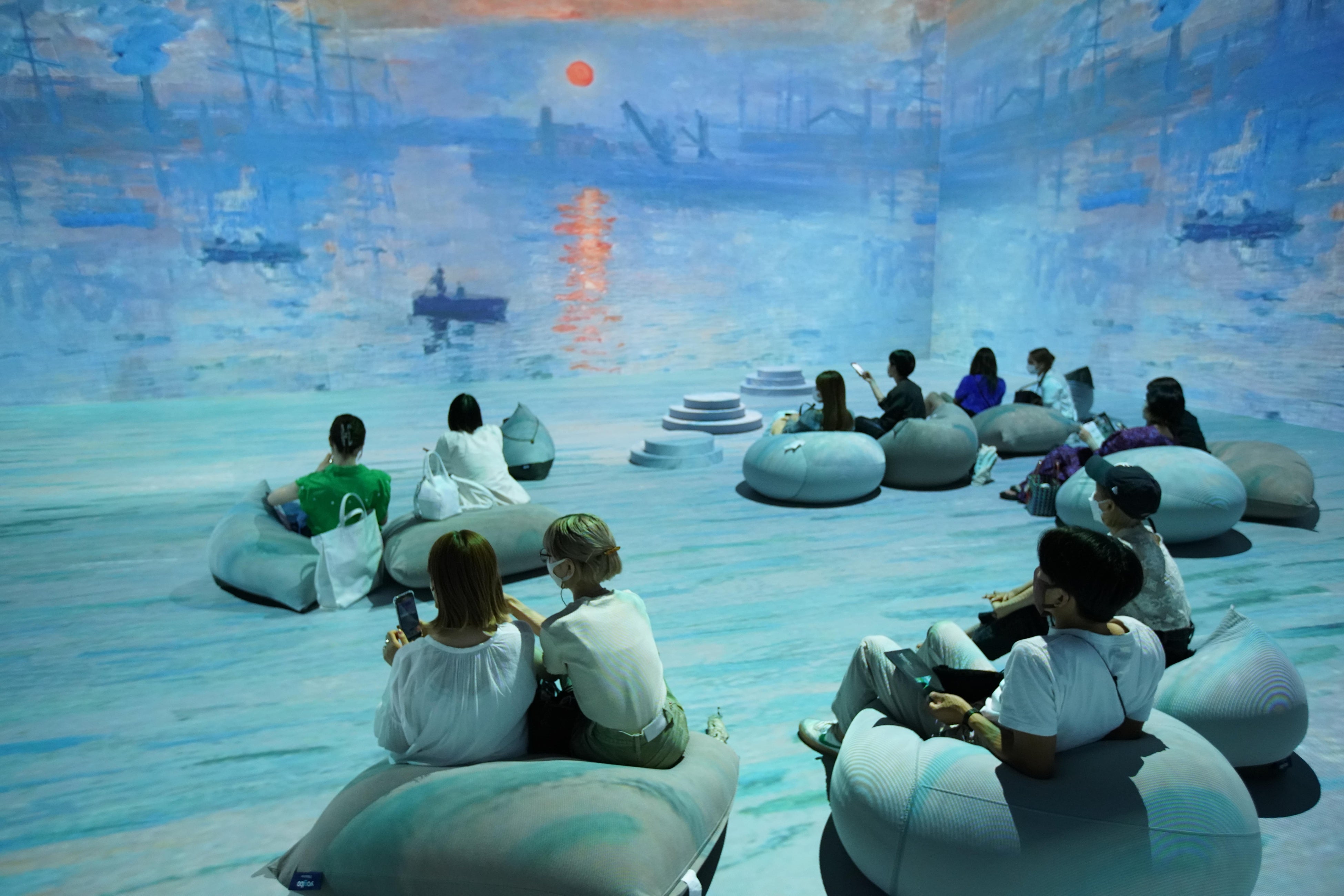今回のプログラムでは、19世紀の西洋絵画研究で知られる早稲田大学文学学術院 坂上桂子教授監修の元、クロード・モネの作品を中心に、印象派を代表する8名の画家と約80作品を選定。19世紀のフランスで絵画の世界に大きな革新をもたらした作品群を8つのシーンにわけて構成しています。また、それぞれのシーンごとにテーマを設け、元の絵画作品を単純に映像化するだけはなく、作品世界により深く入り込むための独自要素を数多く加えました。19世紀当時にモネが見たであろうフランスのル・アーヴル港を、最新のCG技術を用いて実際の絵画作品と融合させる「印象、日の出」。印象派の特徴でもある鮮やかな絵の具を分割し、スケールを変えてみせることで制作過程の絵の中に入り込んだような体験ができる「印象派の技法」。同じ風景の異なる瞬間を切り取った作品群を連続的につなげ、時間の移ろい自体を体験できる「モネの連作」。こうした様々な手法を通じて、鑑賞者が画家自身になったかのような“視点の転換体験”を生み出し、日本のアート体験を大きく拡張します。