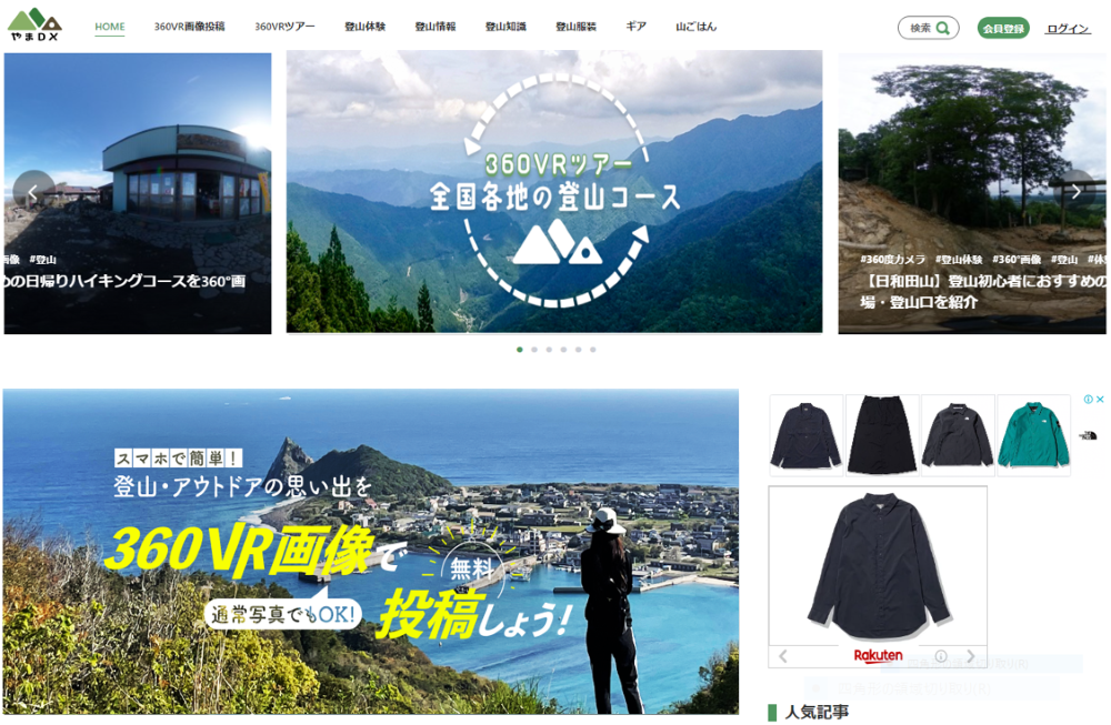 2022年5月より運営している「やまDX」は、360°VR画像による体験型コンテンツ「360°バーチャルツアー」をはじめとして、これまでになかった新しい登山・アウトドアコンテンツを提供してきました。