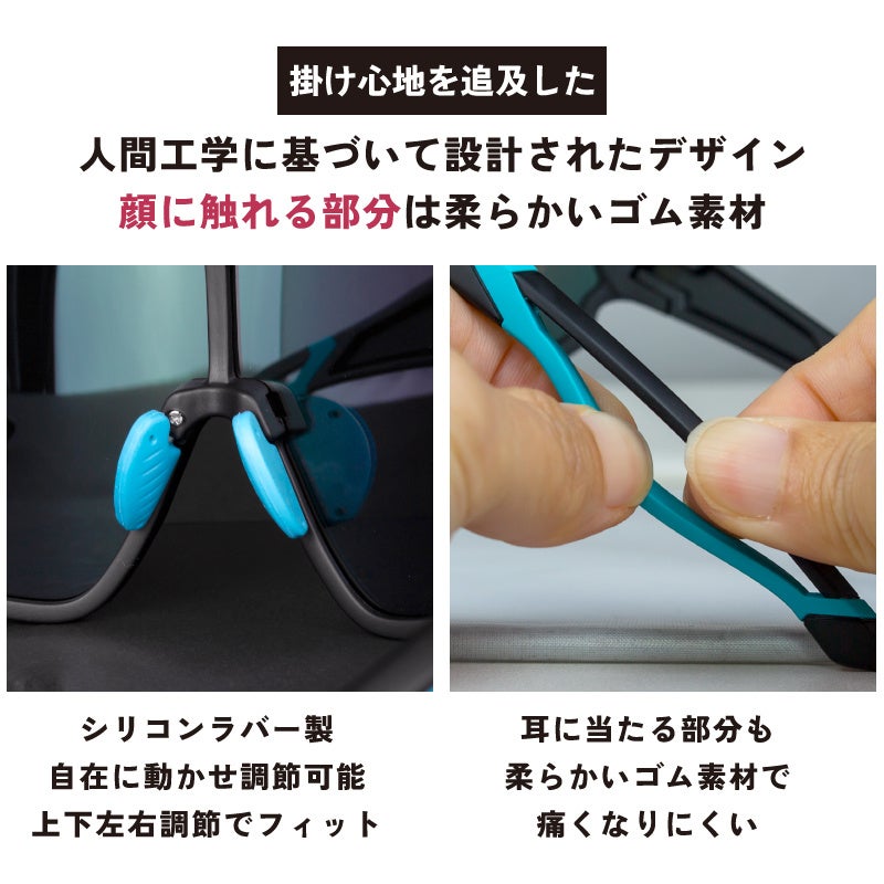 乾燥や虫、飛翔物等からから目を守るスポーツサングラスです。