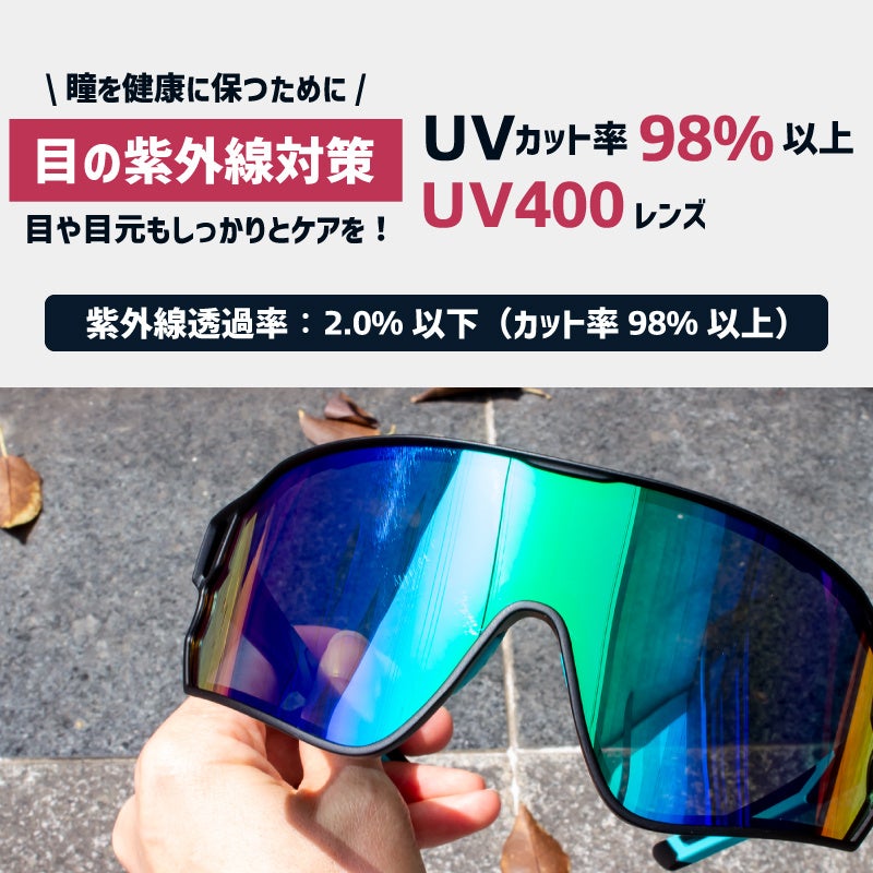 大きめのワイドレンズなので目元を広範囲に紫外線から守り、日焼けを防止します。