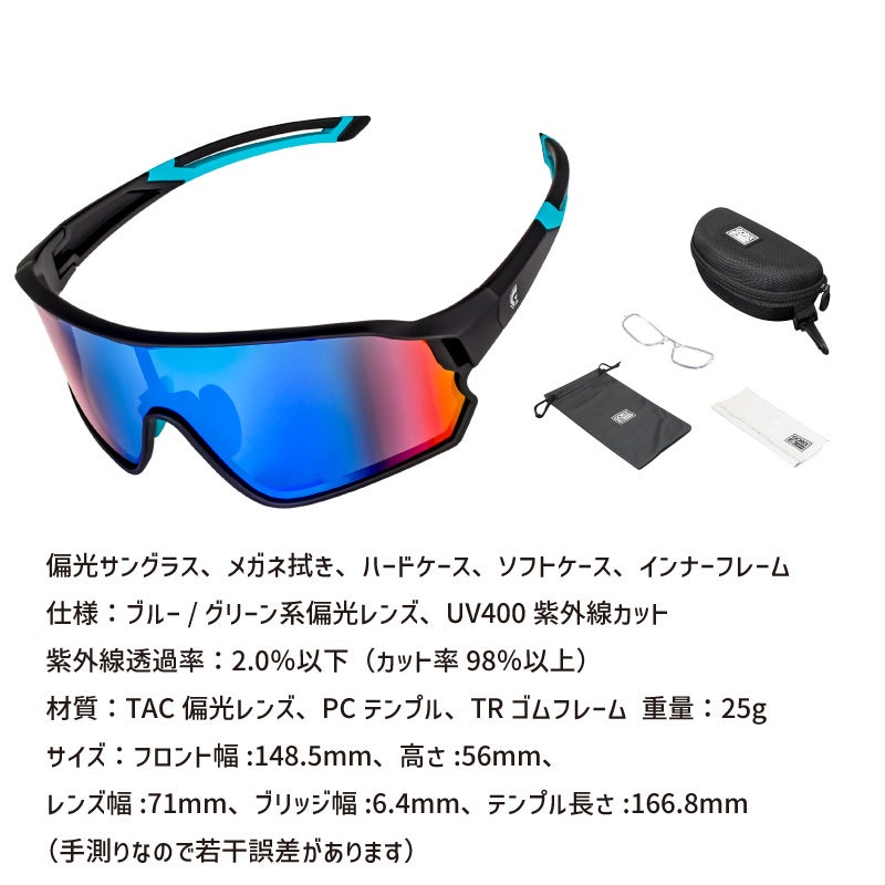 偏光サングラス、メガネ拭き、ハードケース、ソフトケース、インナーフレーム |