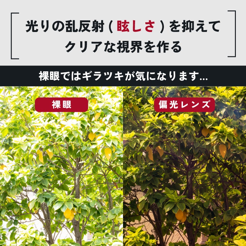 路面や水面などの乱反射した光をカットし、視界をクリアにします。