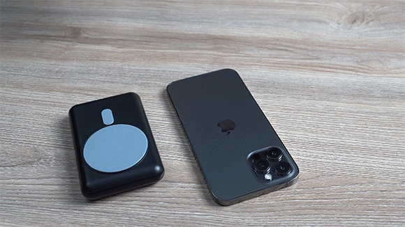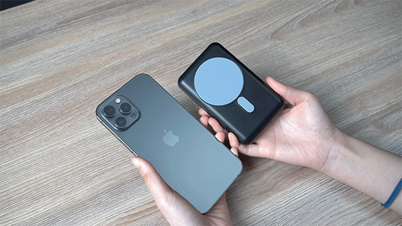 マグネット吸着でケーブルの持ち運びが不要、スマホを置くだけで充電できて便利です。外出中にもモバイルバッテリーが吸着した状態でスマホを持ち歩きながら充電します。