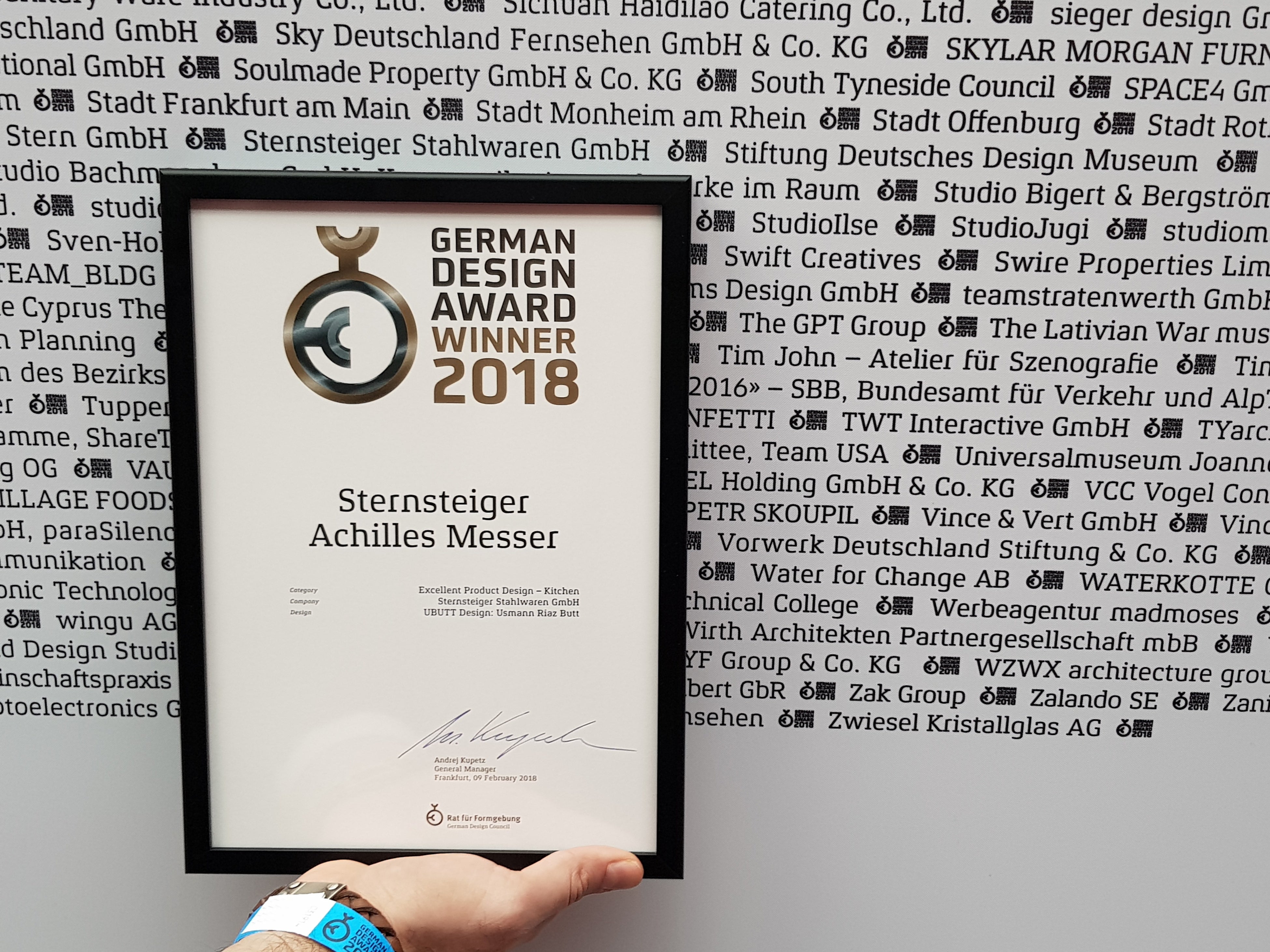 ステルンシュテイガー社は2018年に包丁「Sternsteiger Achilles アキレス 」がジャーマンデザインアワードを受賞し、2022年12月にADCデザインアワードで金賞を受賞したことから大変注目を集めたメーカーです。