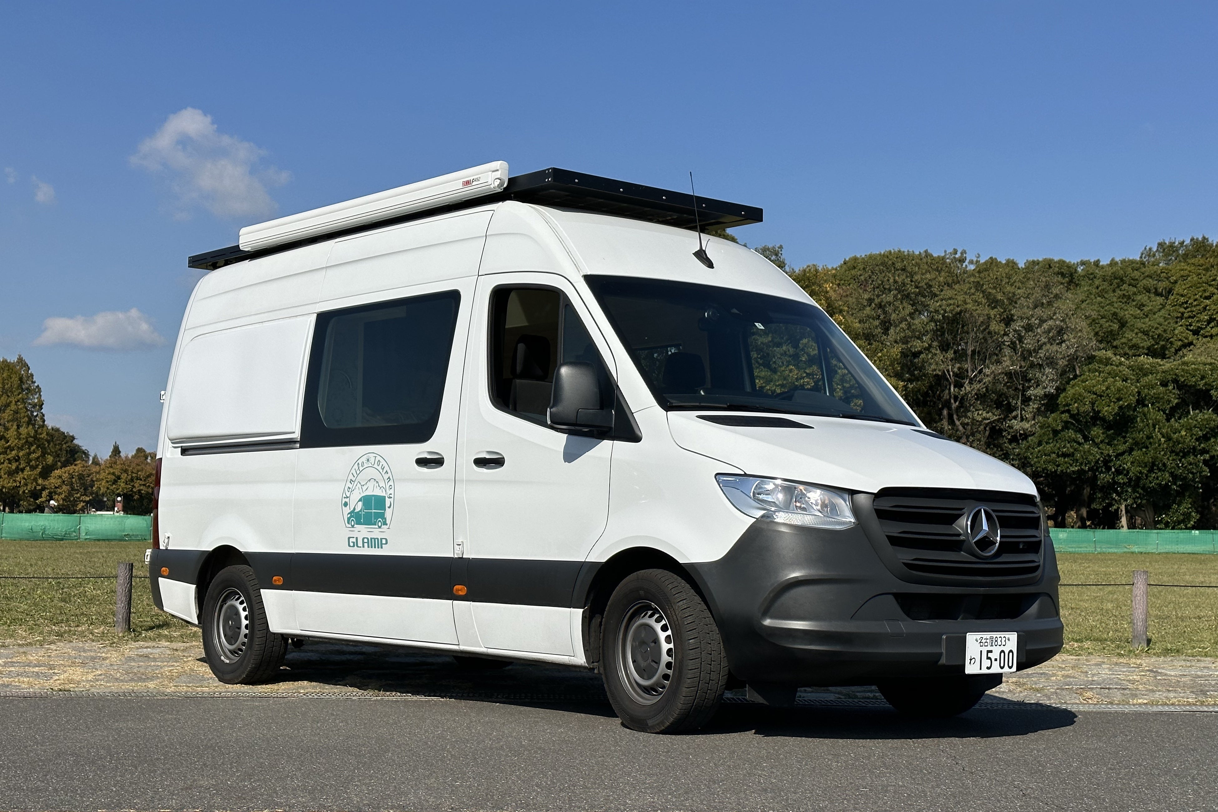 【PIRIKOKO(ピリココ)号】メルセデスベンツ・スプリンターがベース車両のキャンピングカー。車内に高級ホテル部屋のような内装を備えたキャンピングカー。エアコン搭載。調理器具、ランタン、チェア、焚き火台などのキャンプ道具も標準装備。ペット同乗、4人就寝可。(愛知県名古屋市でレンタル可能)