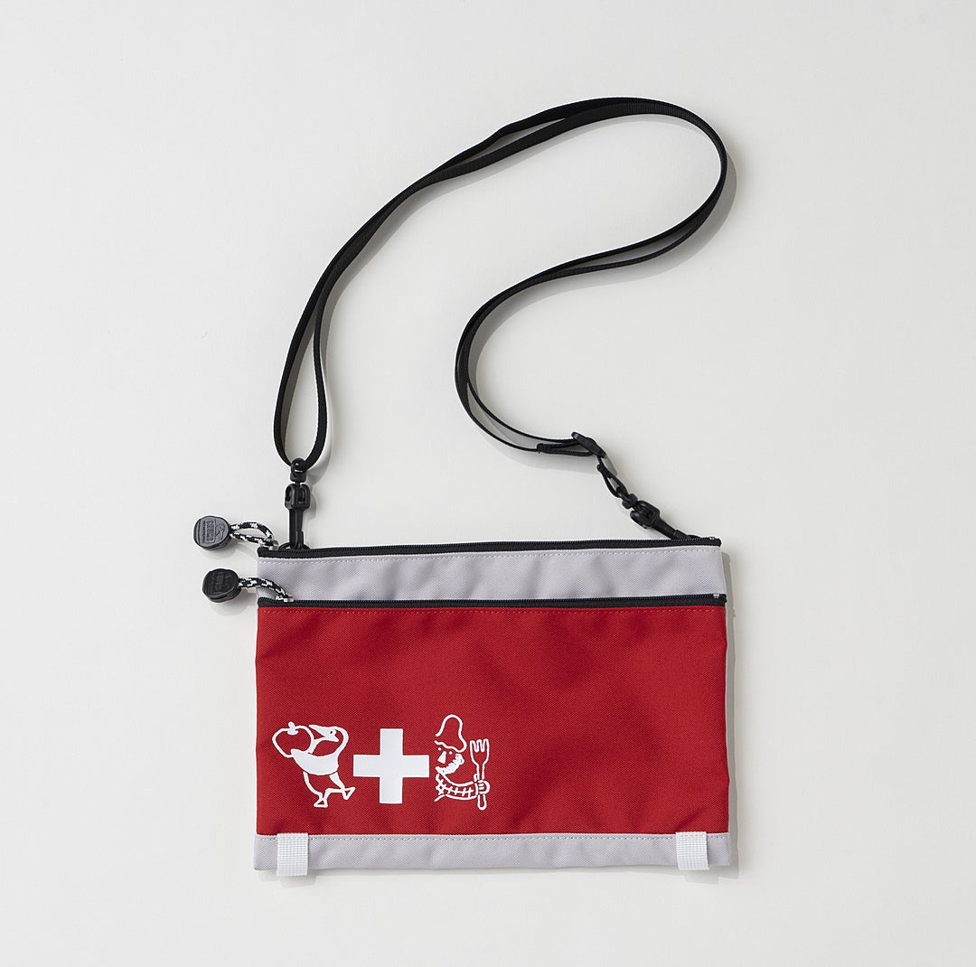 アウトドアや日常、災害時にも役立つエマージェンシーキットを、楽しく便利に持ち運んでもらいたいという思いで制作したサコッシュ。