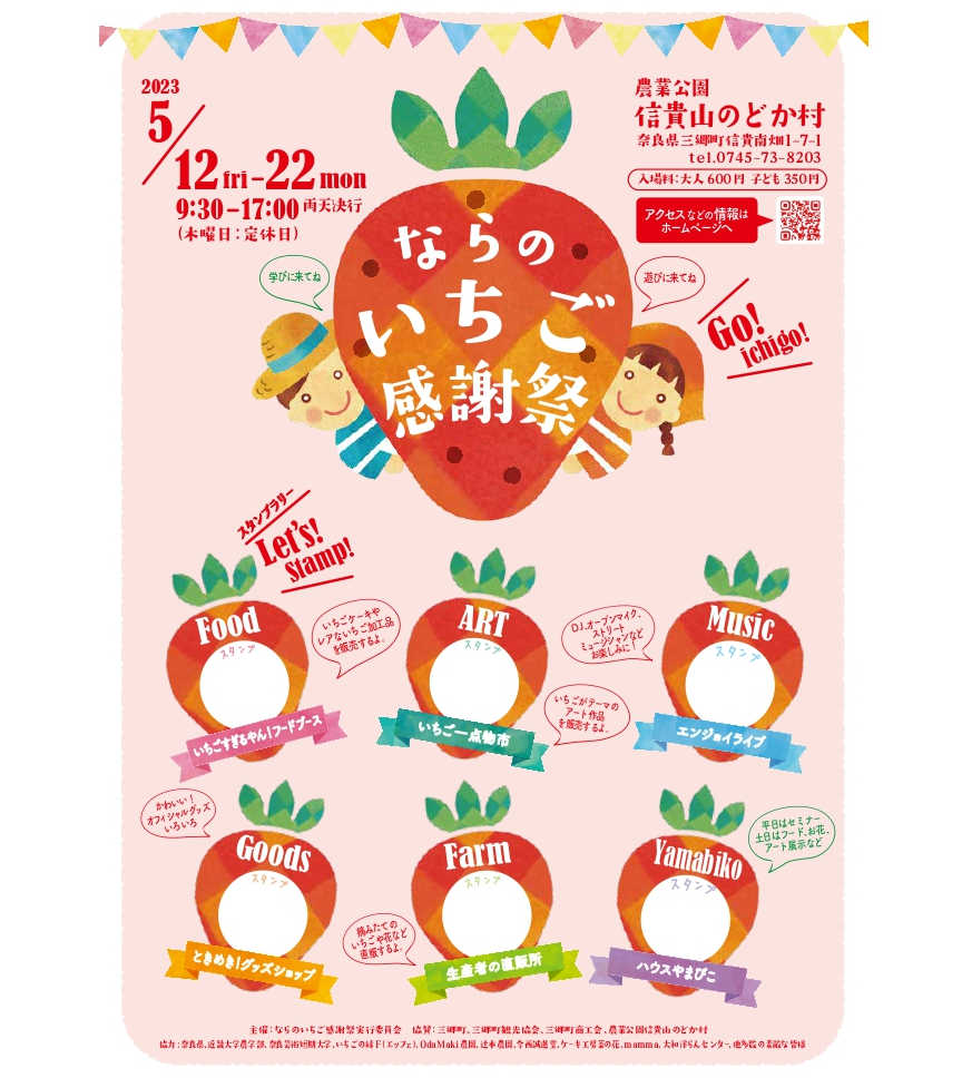 『ならのいちご感謝祭』の農業イベントが、奈良県生駒郡三郷町の「農業公園信貴山のどか村」にて、5月12日(金)よりスタートしています!!