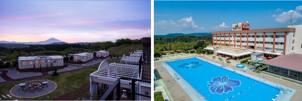 中伊豆ワイナリーヒルズは、ワイン工場のあるぶどう畑が広がる「ワイナリーエリア」と、自家源泉とスポーツ施設を完備した「ホテルエリア」に分かれています。ワイナリーエリアには、乗馬体験ができる牧場やナチュラルウェディングにぴったりのチャペルも併設、2022年秋にはワンちゃんと一緒に宿泊もできるグランピング施設“中伊豆 EAST WINDS VILLAGE”をオープンしました。