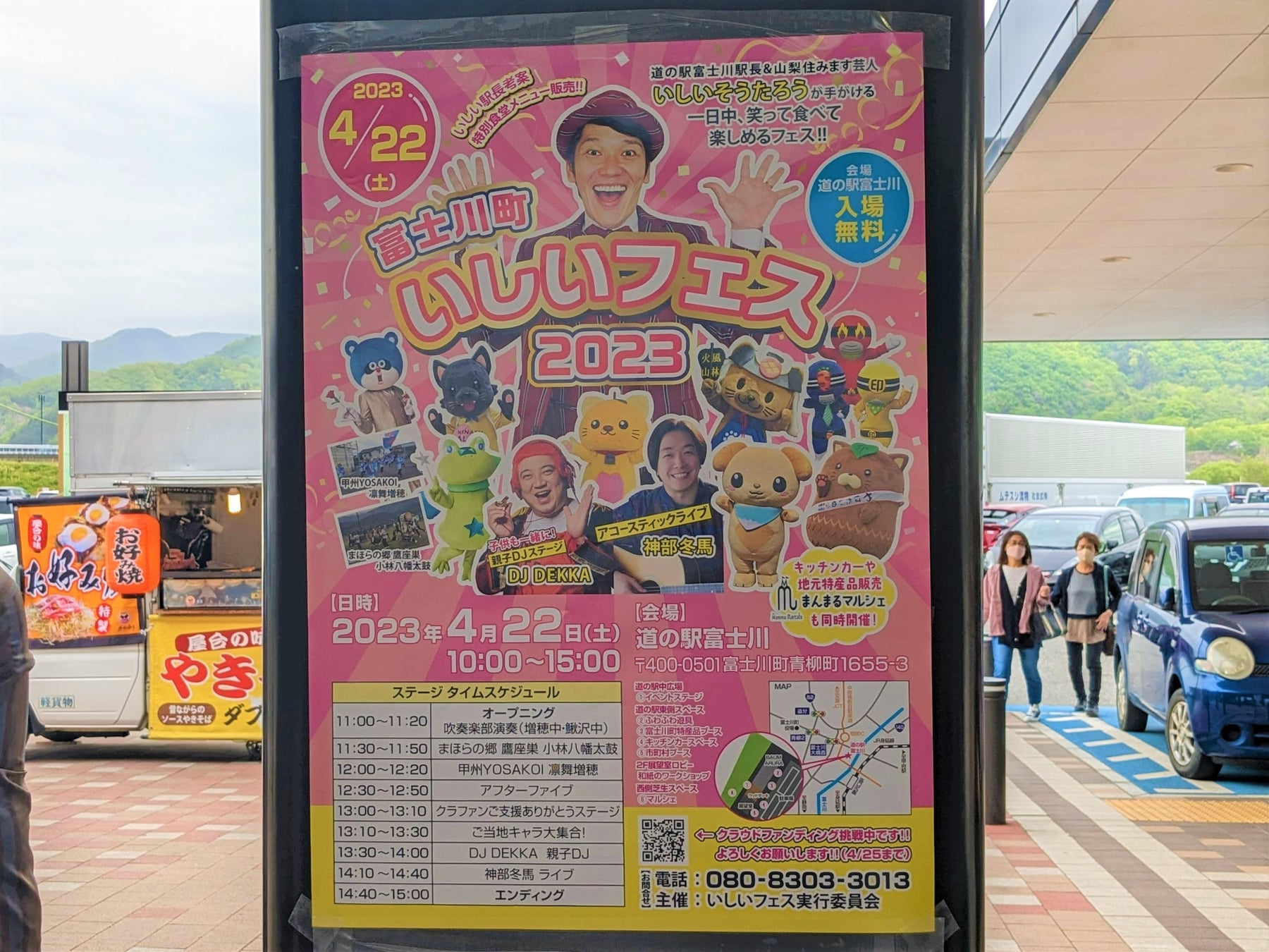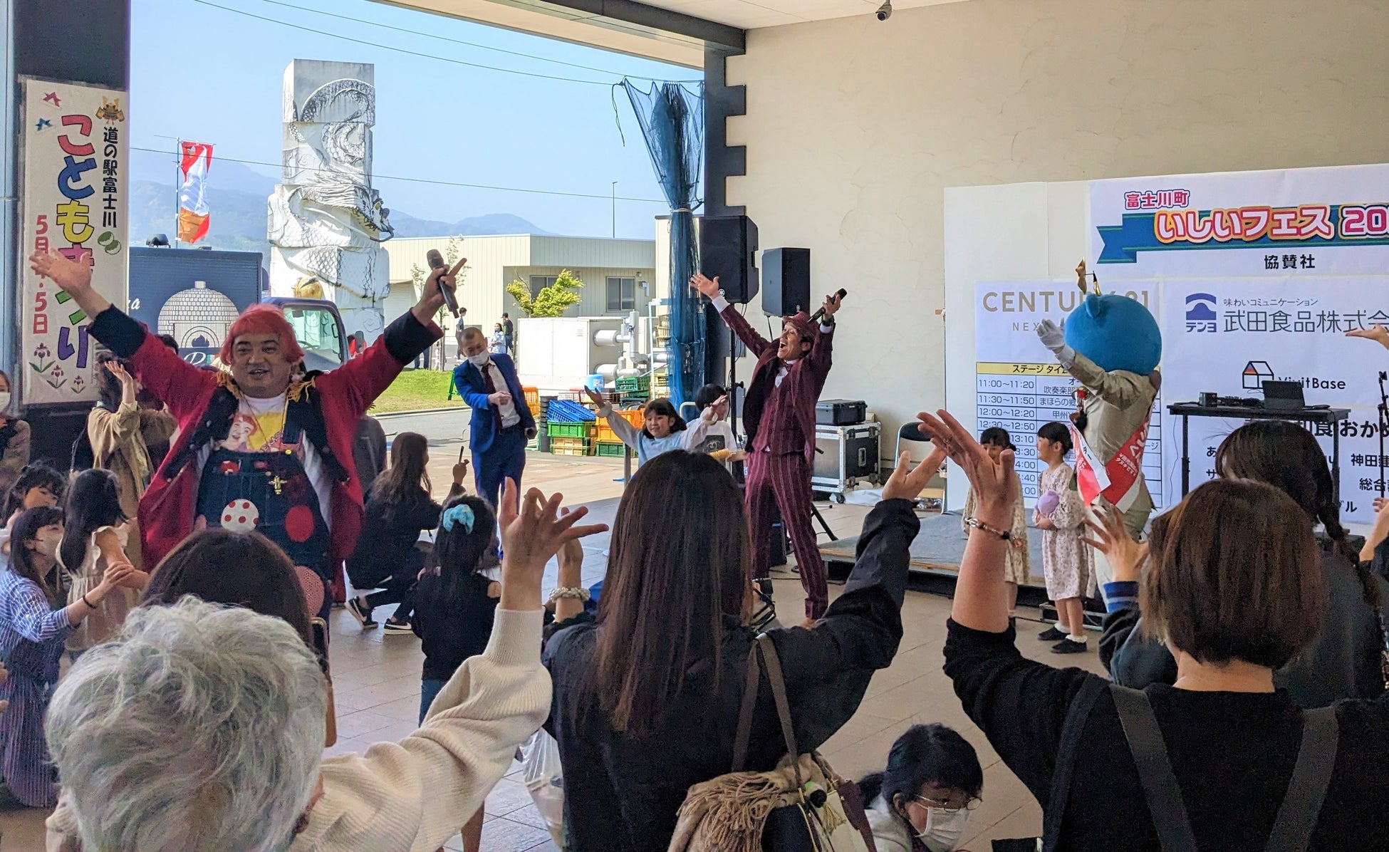 2022年10月には、道の駅富士川の駅長に就任。そんないしいが道の駅富士川と山梨県を盛り上げるために考案したのが今回の「いしいフェス」で、いしいはクラウドファンディングでお金を集めたり、自ら出演者をキャスティングしたりして、イベントをつくりあげました。