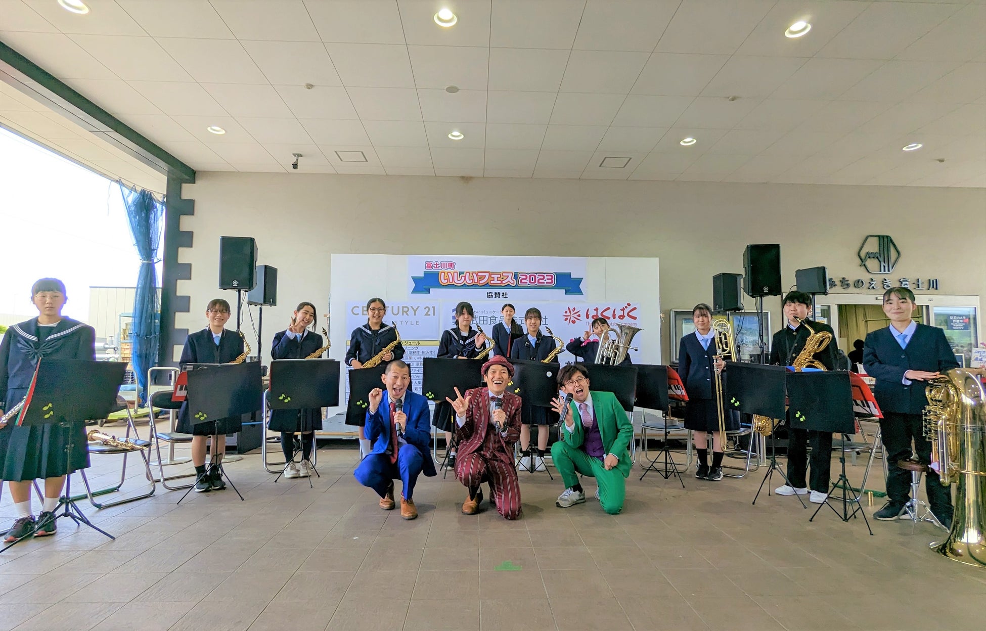 いしいフェスのオープニングアクトでは、地元富士川町の増穂中学校と鰍沢中学校の2校の吹奏楽部が合同となり、演奏を披露しました。YOASOBIの『怪物』やAdoの『新時代』など、流行りの楽曲が次々と演奏され、会場のボルテージがどんどん高まっていきます。