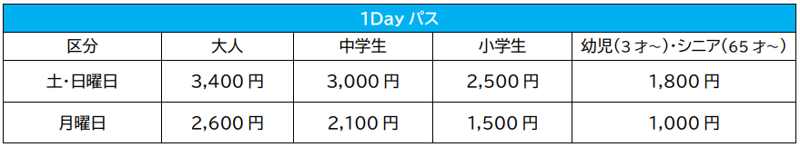 ◆料金: 1Dayパスにて利用可(追加料金なし)