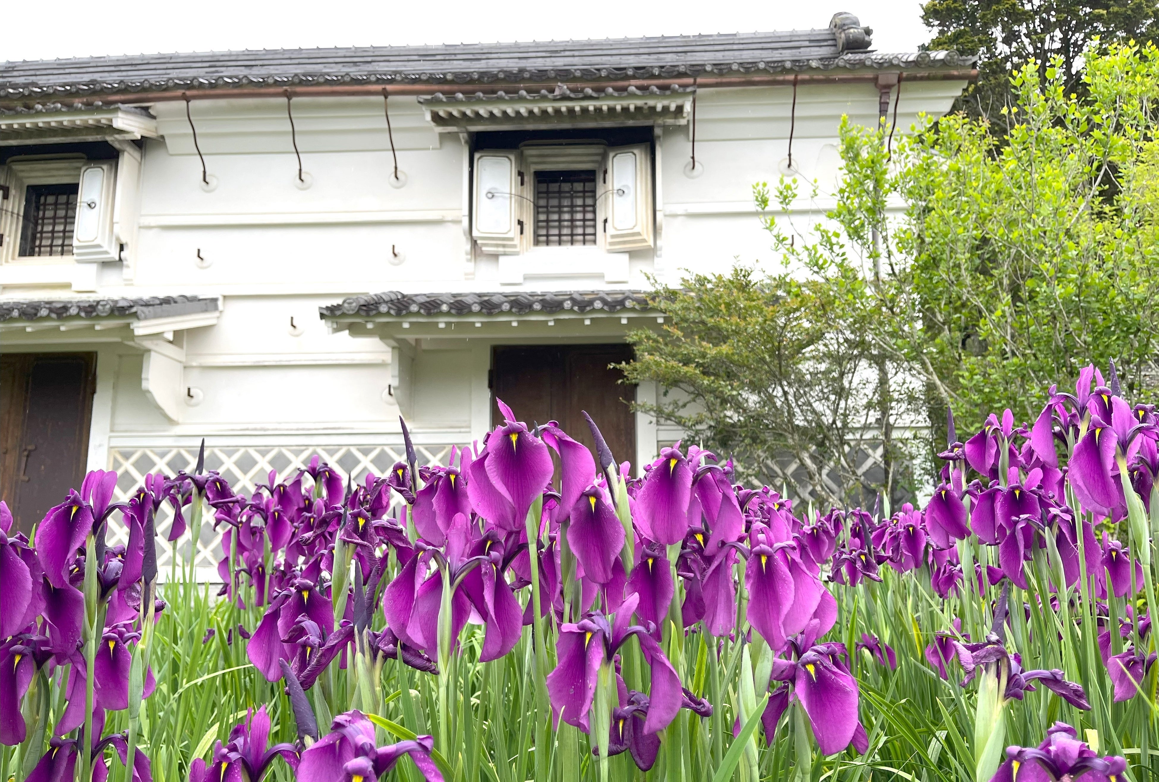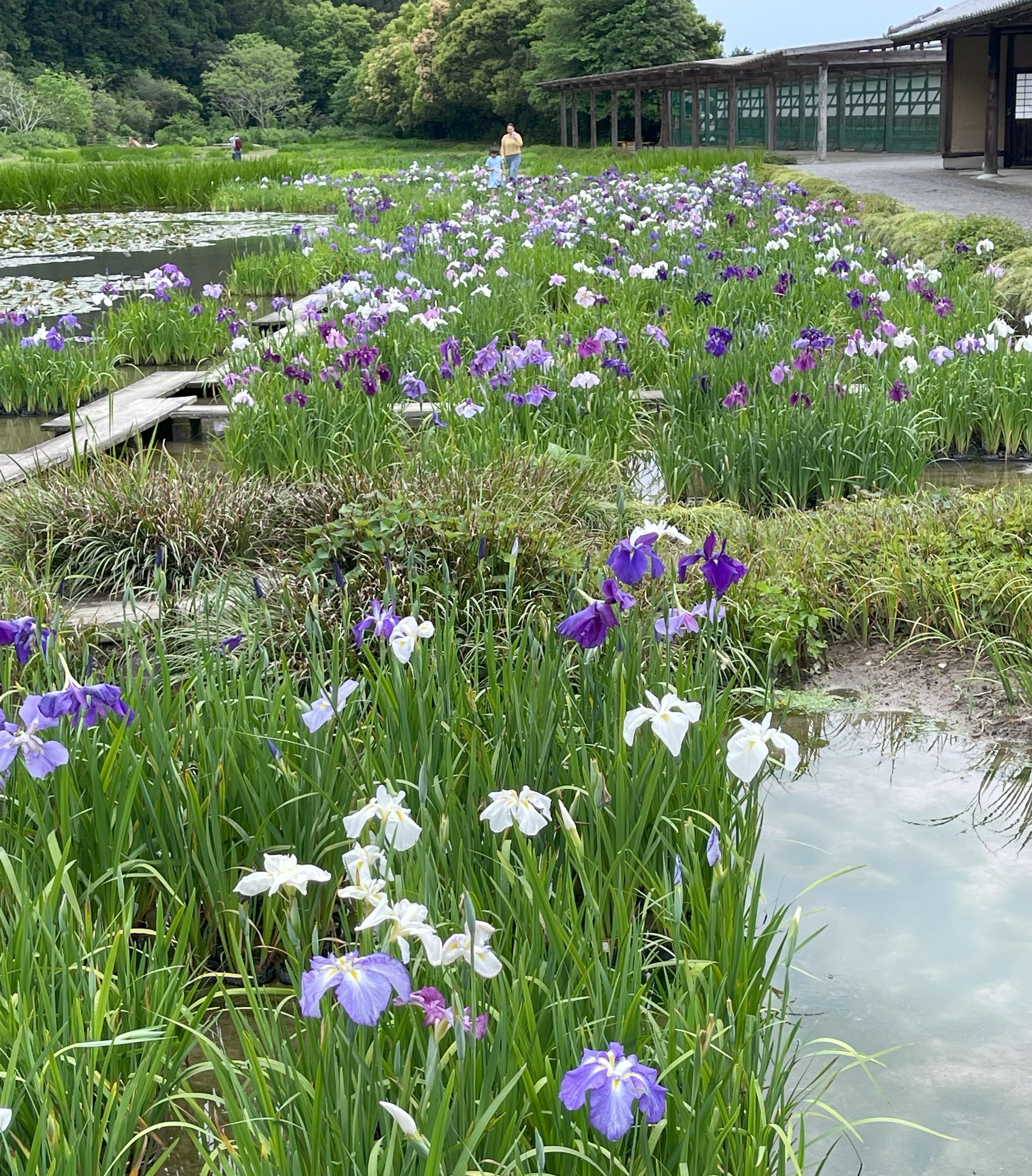 加茂荘花鳥園の花菖蒲は種から育つ「早咲き実生花菖蒲」と、「地植えの花菖蒲」があります。今年、早咲き種は3月末から早々に開花をはじめ、いつもは5月中旬の地植えの古株たちが連休直後に開花しました。加茂荘花鳥園はおそらく日本で一番長く花が続く花菖蒲園の一つですが、今年は6月初旬までに来ていただいたほうがよさそうです。そして加茂荘花鳥園のもう一つの魅力は庄屋屋敷を背景にした花菖蒲園の真ん中に立つと、カエルの大合唱に包まれて、池の中のオタマジャクシやミズスマシと仲良しになれること。花菖蒲やアジサイと共に、古き良き里山の雰囲気を心ゆくまで楽しんでください。
