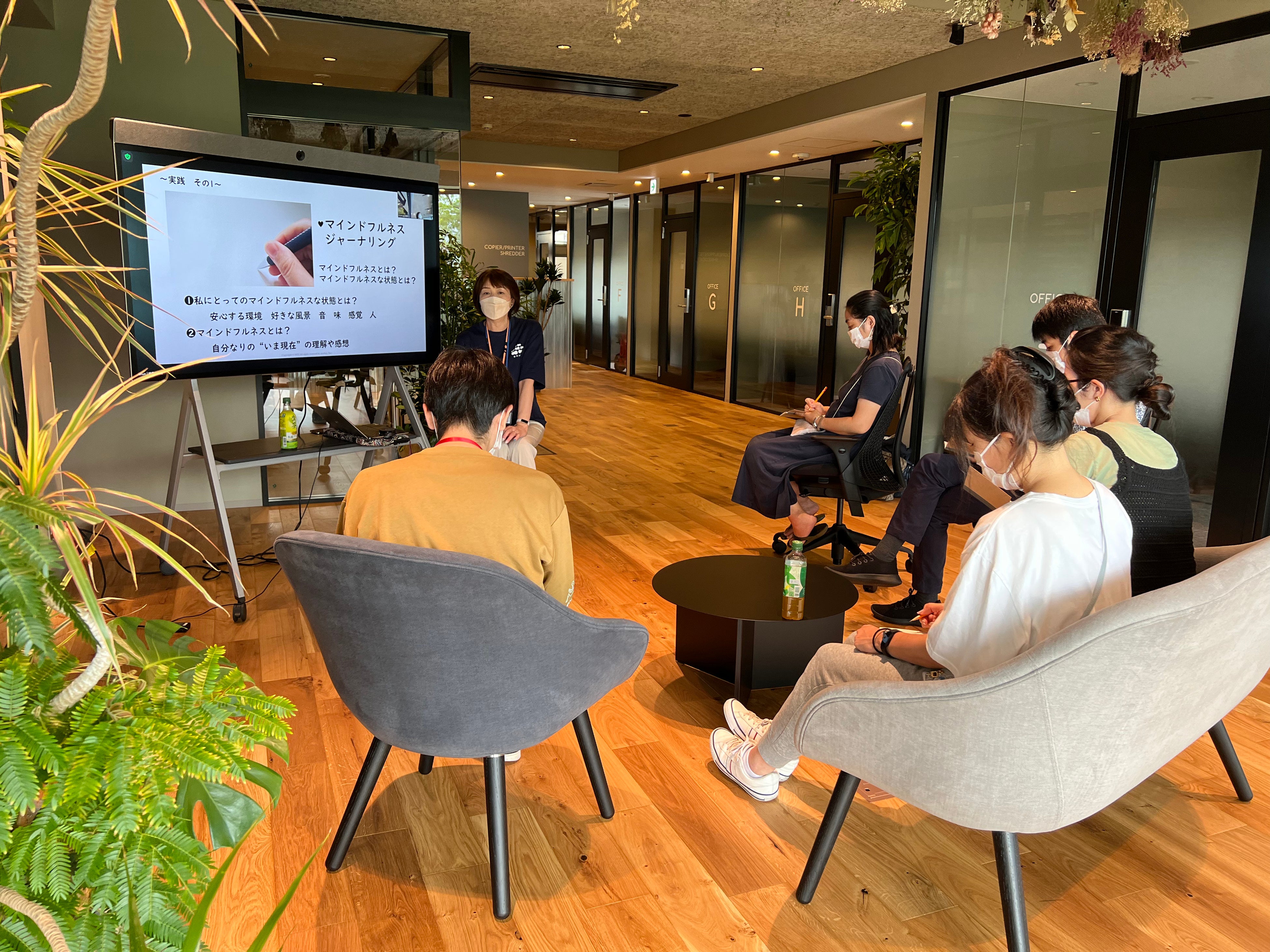 この3ヶ月プログラムでも初回の松江滞在中には、マインドフルネスの概要を掴むワークショップ、マインドフルネス瞑想・ヨガ・マインドフルイーティングの時間を設けました。
