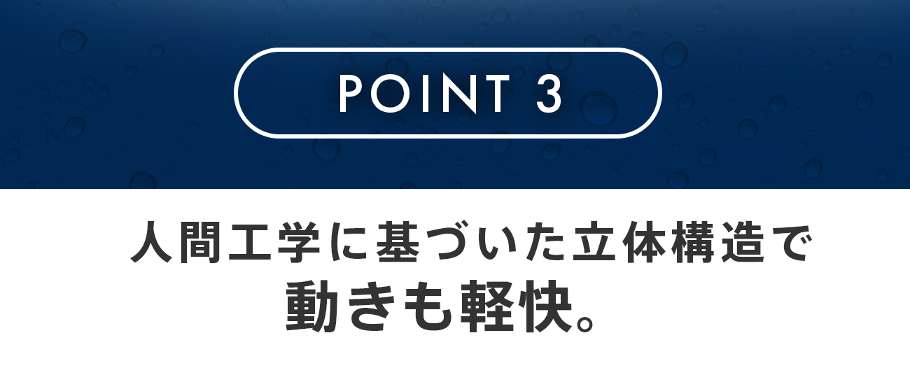 - 透湿性素材と放熱スリットで湿気や熱気がこもりにくく、さらにミルク繊維の裏地で肌にも優しい。