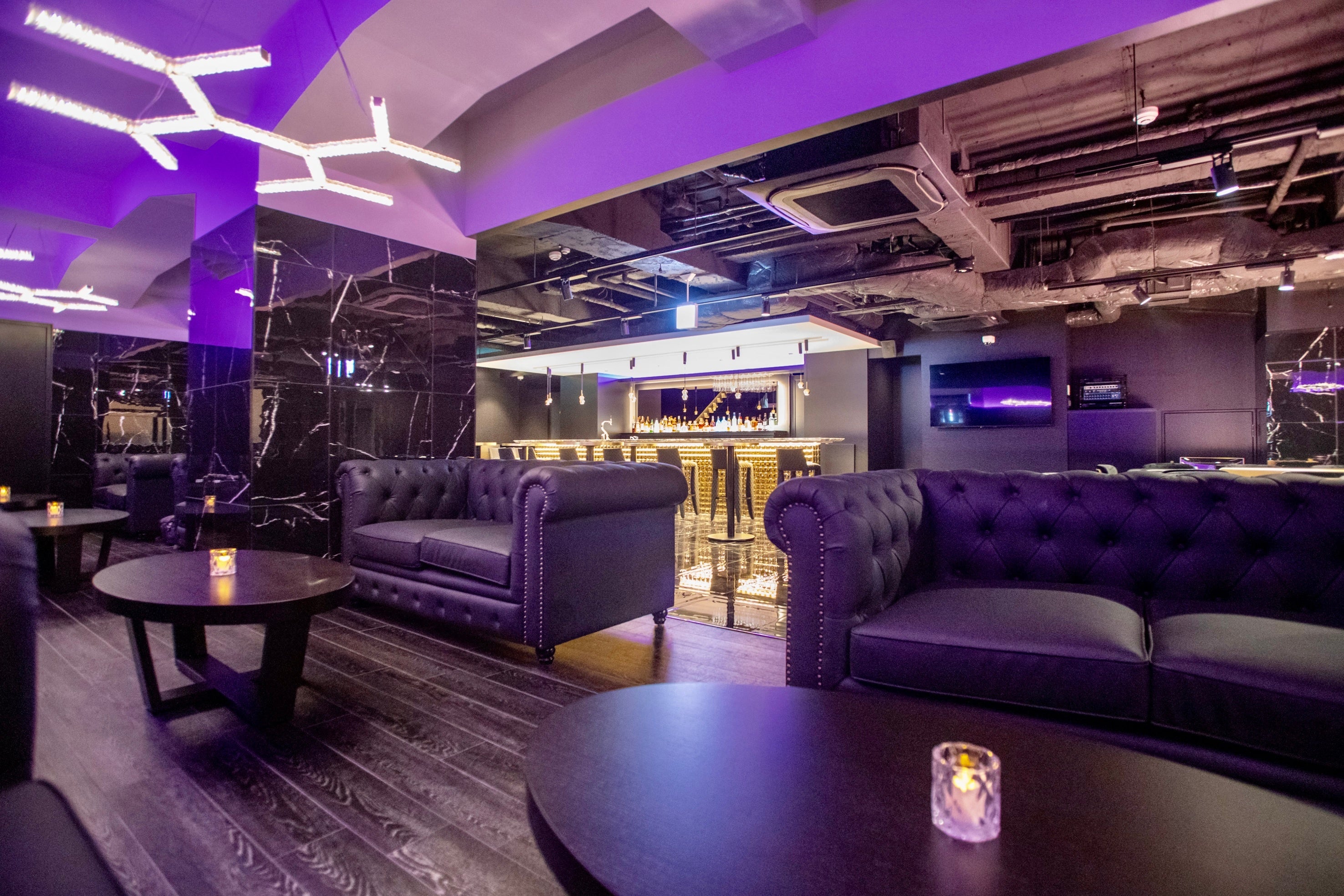 約100坪・総工費1億4千万以上かけた店内は、ブラックとゴールドを基調とした大理石調の内装に、カジノ台の鮮やかなパープルがアクセントに。店内の香りはラスベガスのカジノ施設と同じ物を使用し、まるで本場のカジノに行ったような気分を味わえます。カジノエリア以外にも、ゆったりおくつろぎいただけるソファー席やバーカウンターも完備。バーや飲食のみのご利用は勿論、結婚式の二次会やパーティーなどのイベント会場としてのご利用も可能です。