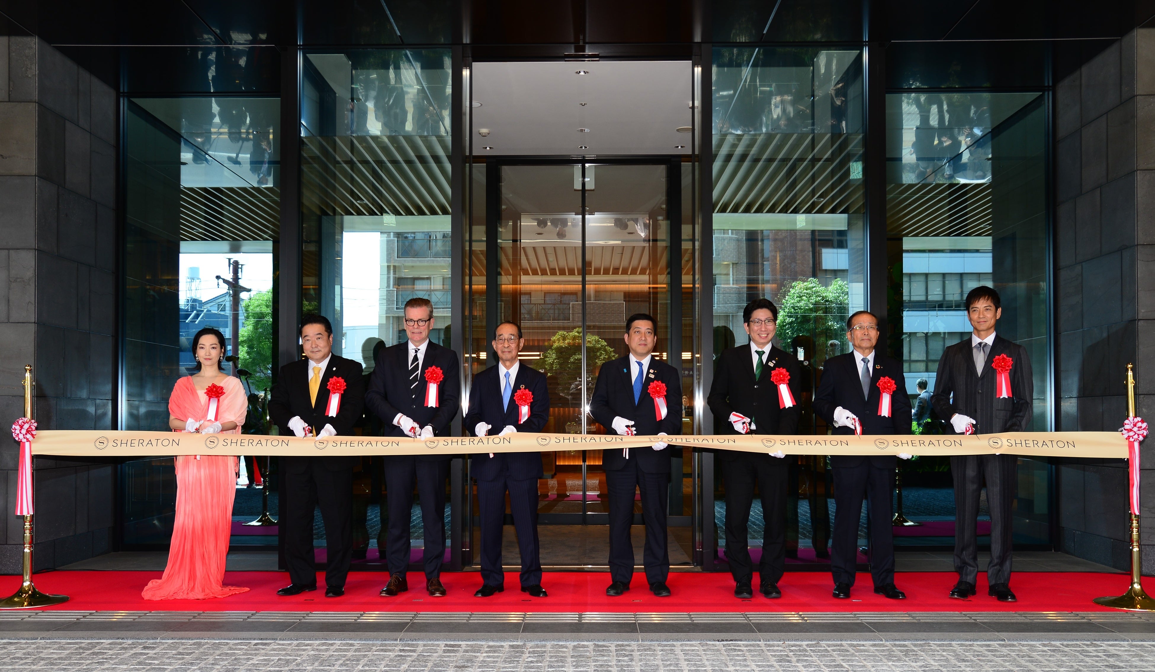 テープカットセレモニーには鹿児島県知事 塩田 康一氏、鹿児島市長 下鶴 隆央氏、南国殖産株式会社 代表取締役社長 永山 在紀氏、南国ホテルズ株式会社 代表取締役社長 伊牟田 均、マリオット・インターナショナル 日本・グアムエリアヴァイスプレジデント カール・ハドソン、シェラトン鹿児島総支配人 戸田 猛樹が参加し、沢村さんと奄美出身で大河ドラマ「西郷どん」の主題歌の歌唱でも著名な歌手の里 アンナさんも花を添えました。