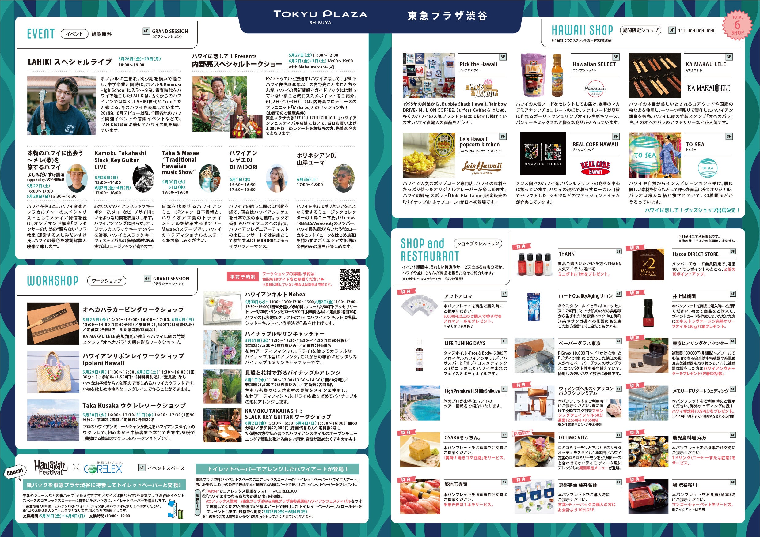 コアレックス信栄株式会社プロデュース。紙パックを東急プラザ渋谷に持参するとトイレットペーパーと交換するリサイクルイベントやトイレットペーパーでアレンジしたハワイアートが登場する写真コーナーです。