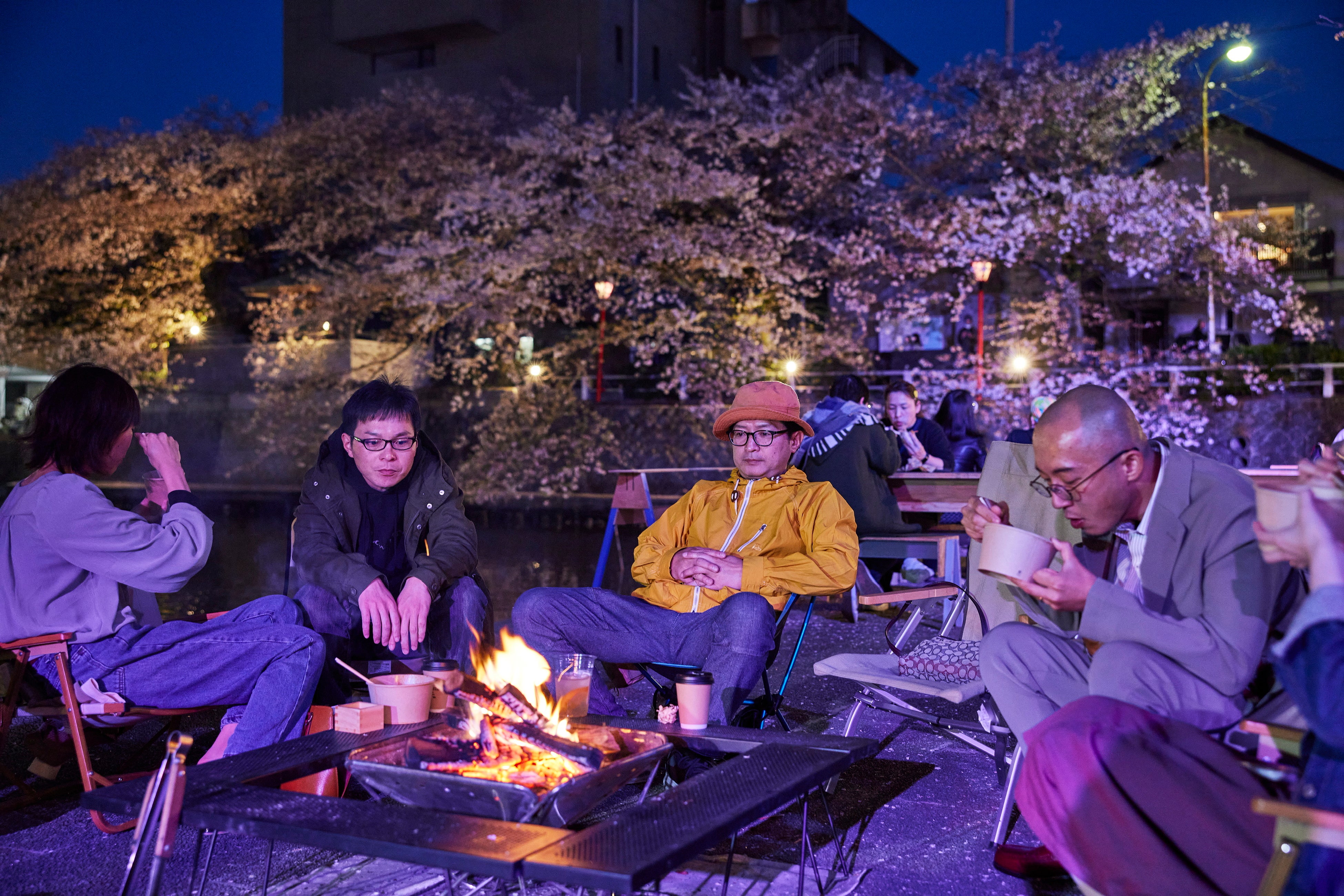 令和5年4月に開催した「かわまちテラス」では、テラス席の設置や桜のライトアップをはじめ、キッチンカーの出店や官民連携によるマーケットのほか、津軽三味線奏者によるステージ演奏など、非日常的で居心地の良い空間が生まれました。