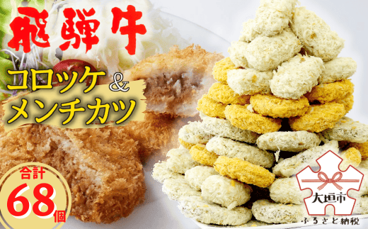・飛騨牛コロッケ&メンチカツ68個【寄附額:20,000円】