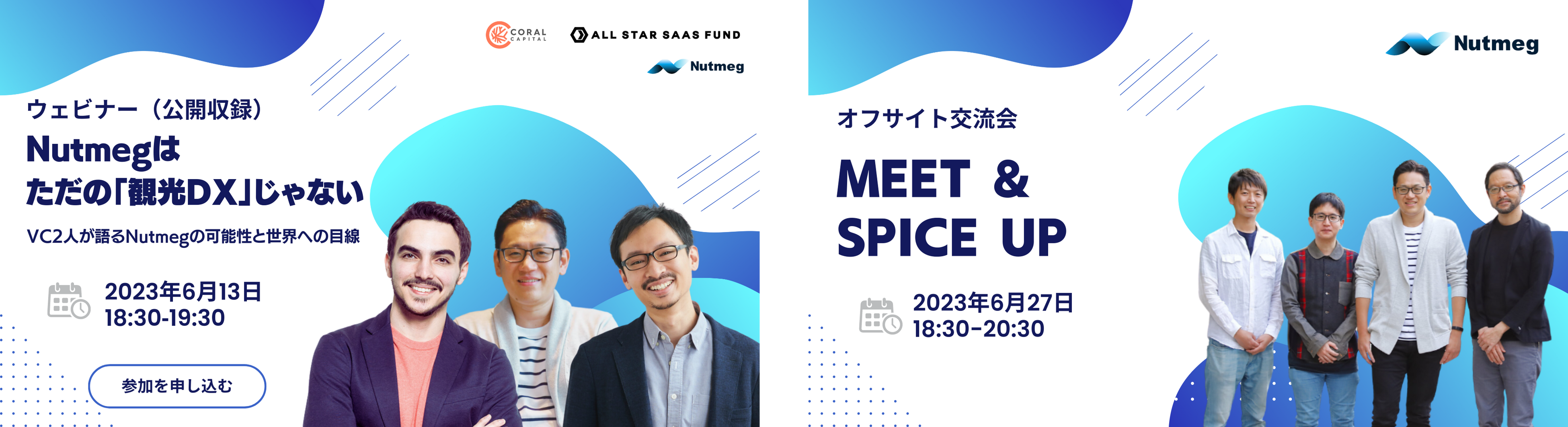中口CEOの強いビジョンと“ブルドーザー“のような実行力、業界に対する深い理解、そしてSpencer CTOを筆頭に開発力の高さからくる強力なプロダクト。NutmegLabsには、SaaS事業を成長に導く重要な要素が集まっています。投資検討でお客さまとお話しをさせていただいた際も、NutmegLabsへの絶対の信頼と期待を強烈に感じ、心を打たれました。日本の旅行・観光産業は、約30兆円の超巨大市場。日本の成長戦略の重要な柱です。VELTRAで培った旅行業界への深い知見とネットワーク、高いチームワーク力をもって徹底的にお客さまに向き合おうとする彼らは、日本と世界の観光産業を前進させる重要な企業になると確信しています。ALL STAR SAAS FUNDも、チーム一丸となってサポートしていきたいと思います。