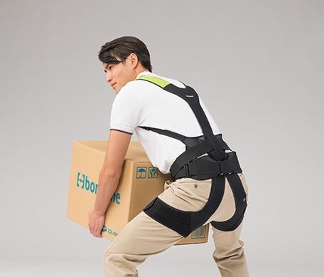 骨盤のコルセット機能+背中のアシスト機能で、作業現場の中腰姿勢、前屈動作をサポート。簡易的な脱着で中腰姿勢をサポートします。