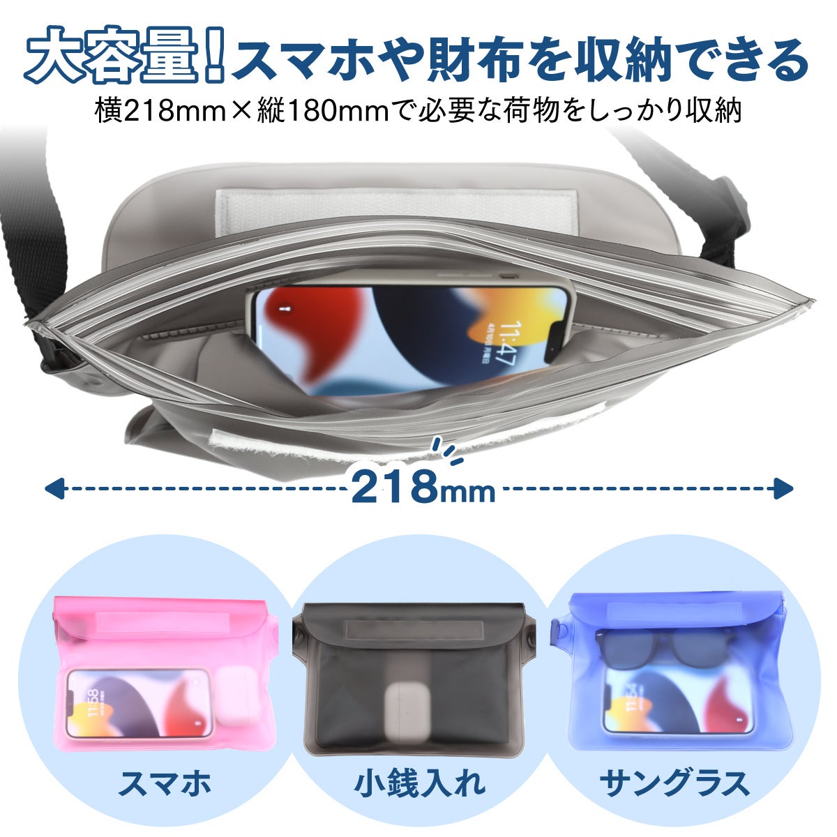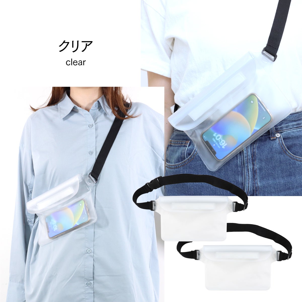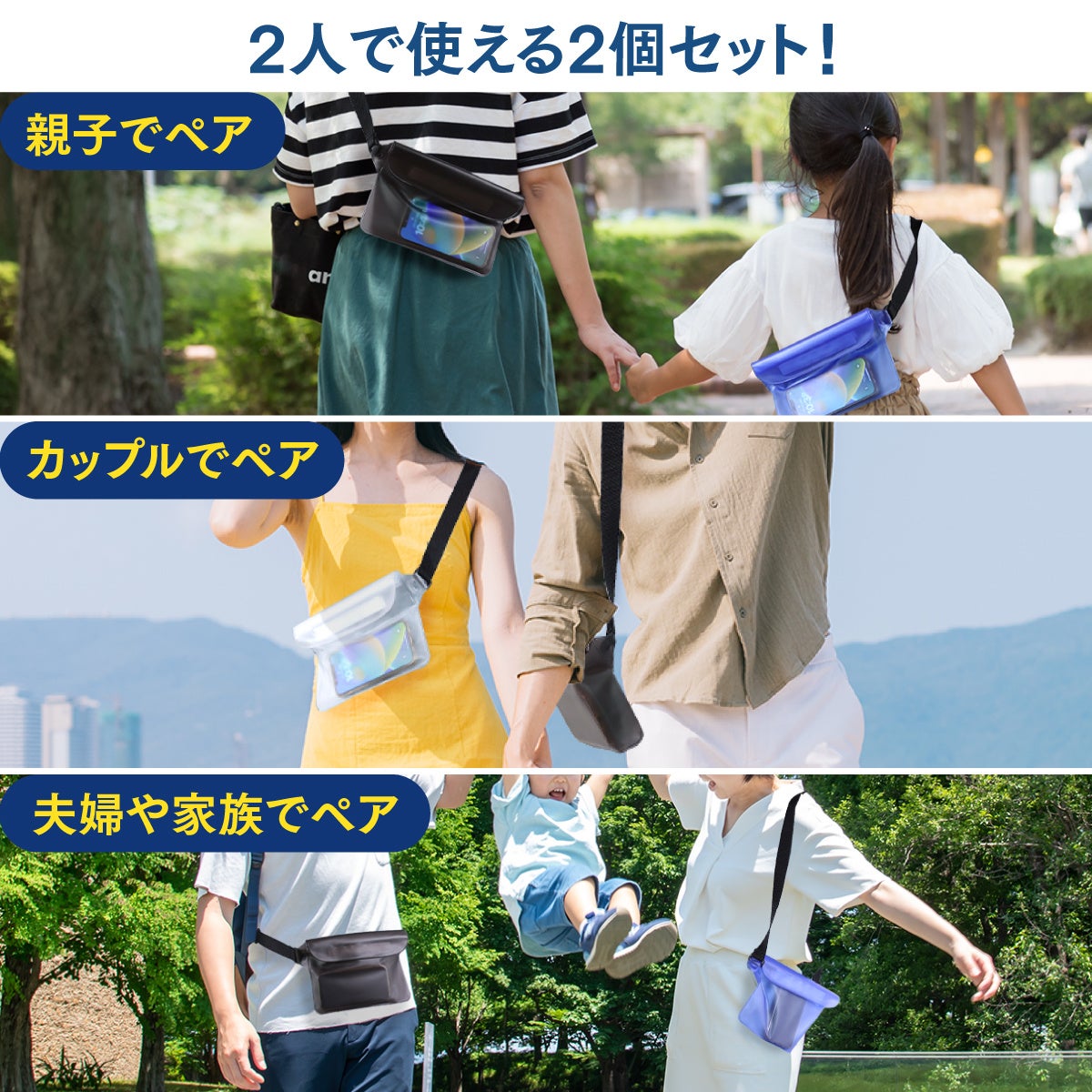 IPX8の防水ポーチ【ミズアソビ】ペアで使える2個セット。ベルト調整可能でウエスト・ボディ・ショルダー・肩掛け・首掛けバッグに。スマホや小物を防水保護して海水浴・SUP・プールを楽しもう!