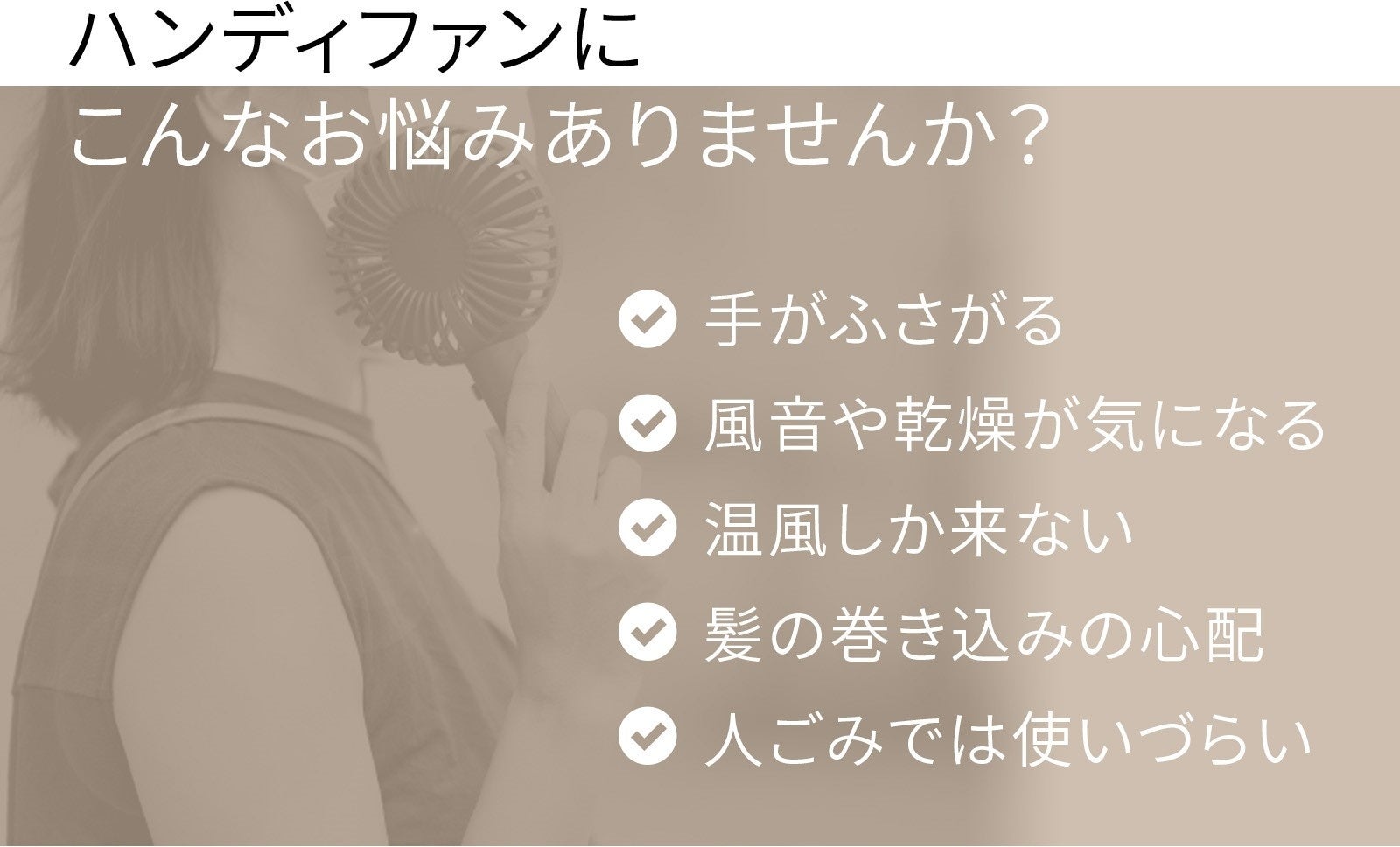 例年の暑さに耐えかね、ハンディ式の扇風機をご使用されている方も多くおられますが、「使用中に手がふさがってしまう」ことや、暑い屋外などの環境ではどうしても「温風が送られてきて涼しさを感じない」等の不満をお持ちではないでしょうか。