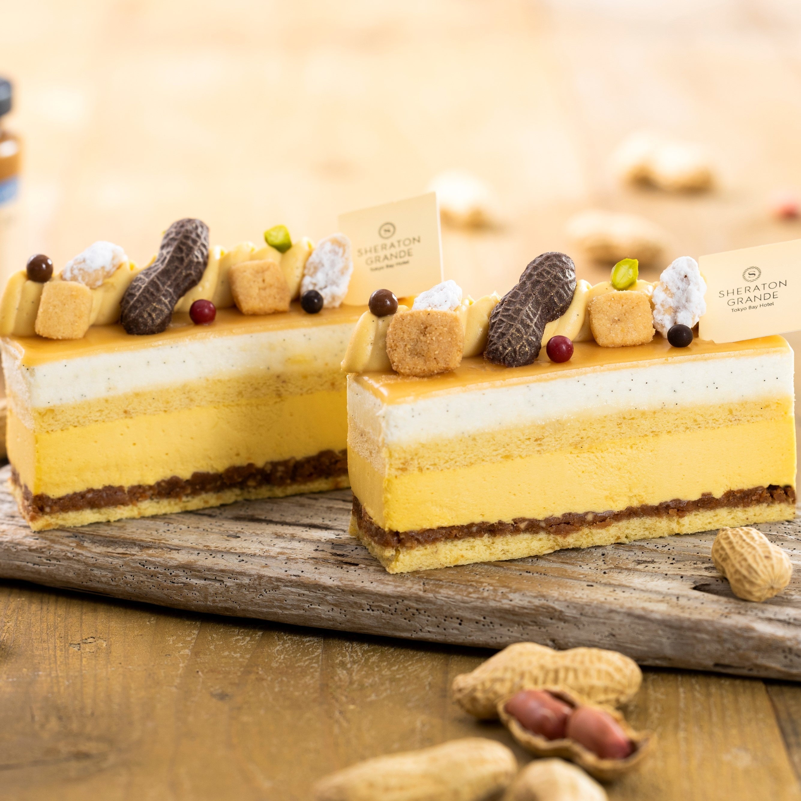 千葉県を代表する名産品、ピーナッツをふんだんに使用した、食べ応え十分のナッツが香るケーキです。ジョコンドやクランチ、ムースなど、各層の随所にピーナッツを取り入れ、様々な角度からナッツの風味や食感をご堪能いただけます。まさに千葉県産ピーナッツ尽くしの一品に仕上がっています。
